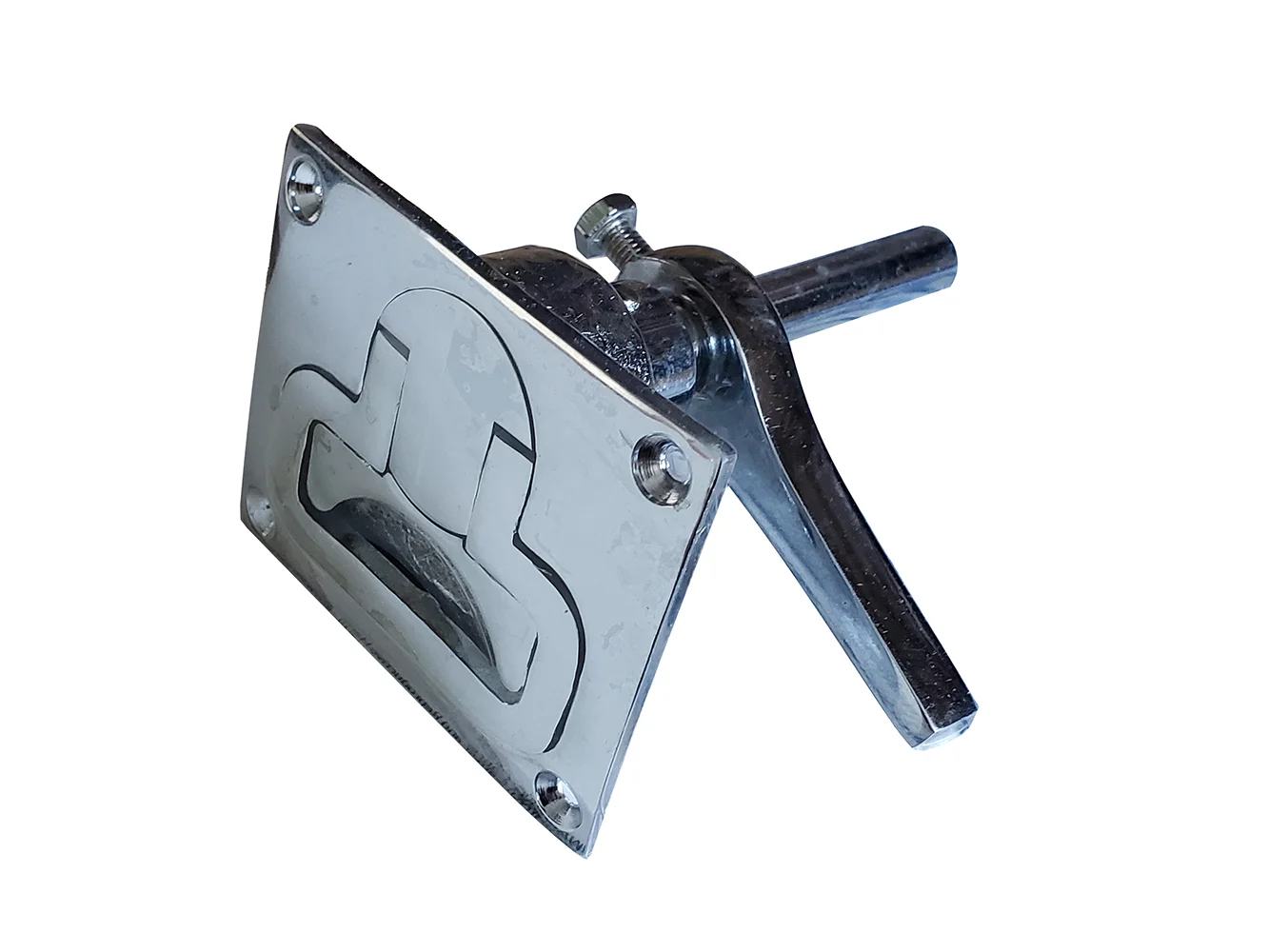 Constructed of sand cast brass with a chrome plated finish. These Hatch Handle Latches are ideal for use on doors, hatches, lazarettes, and dock boxes. Handle pivots out to open hatches and lays flush when not in use for a clean appearance. Adjustable locking arm adds additional security. Installs with four #8 FH fasteners (not included). Once installed, the locking arm can be trimmed to length.