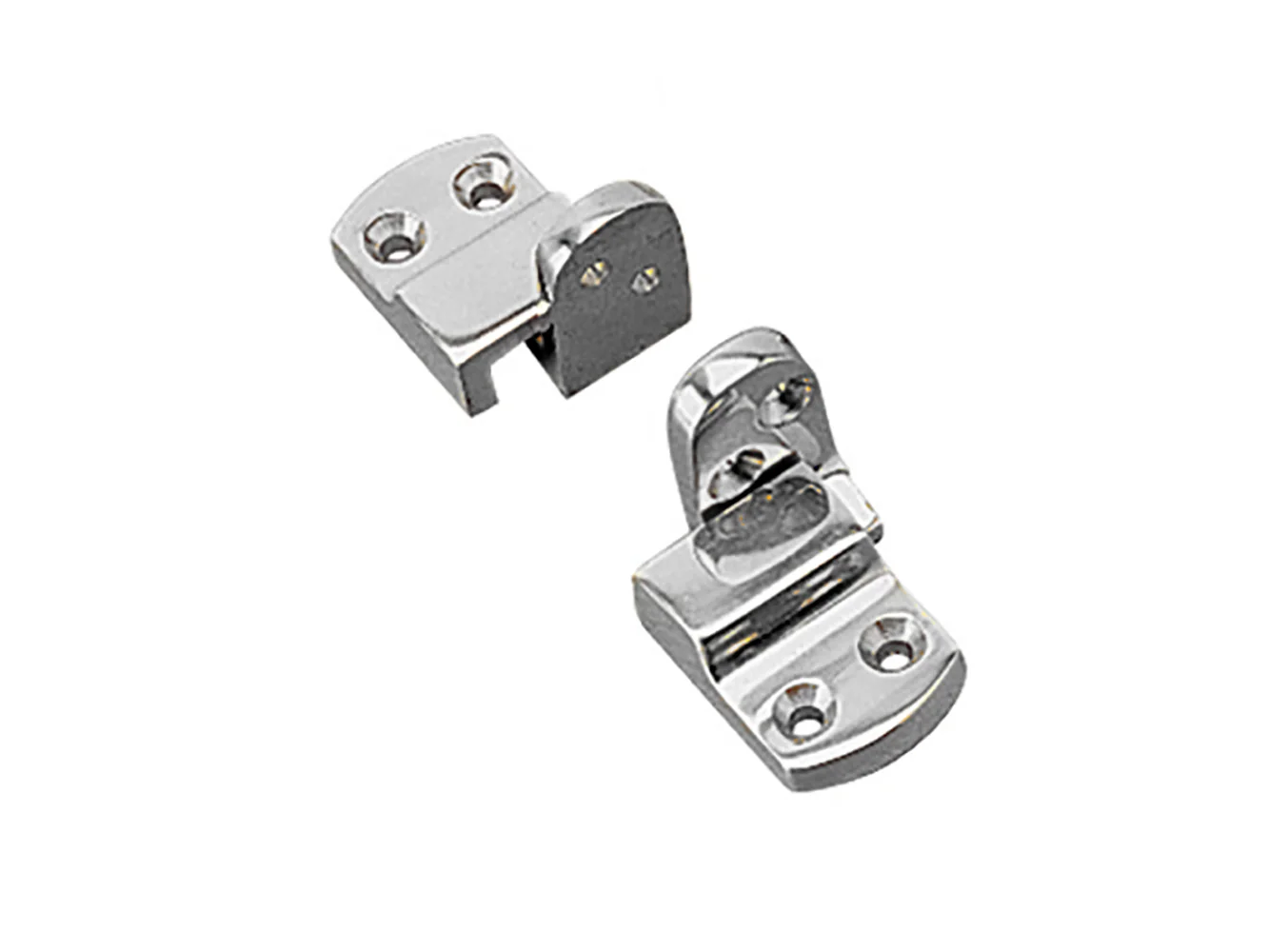 These highly polished Ladder Locks are commonly used with wooden step ladders. Ladder slips into tapered locks and becomes secure as it is lowered in to place. Constructed of cast brass with a chrome plated finish. Installs with eight #10 FH fasteners (not included).