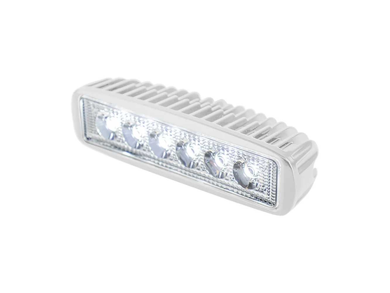These marine grade LED Cockpit Spreader Lights feature six 3W high intensity Epistar LEDs that produce 1440 lumens. The wide beam polycarbonate lens provides ample illumination for sail trim or deck work. Constructed of a powder coated die cast aluminum housing with a stamped 304 stainless steel mounting bracket. Available in black or white. Low amp draw. 1A @ 12VDC. IP68 waterproof rating. CE, RoHS compliant.