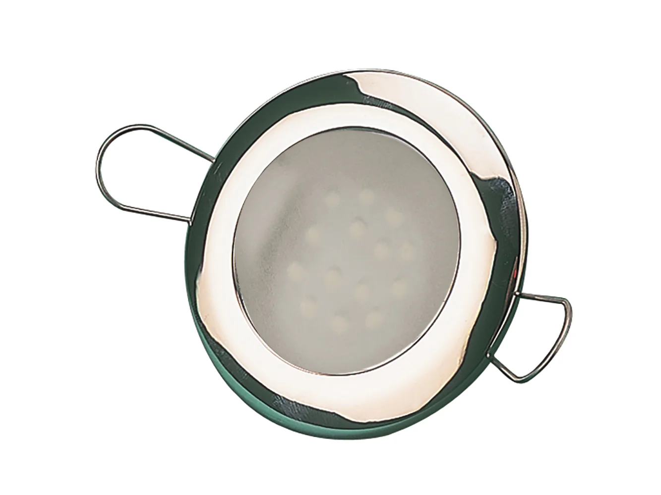 LED Overhead Lights feature excellent light dispersion and brightness, making them ideal for all accent lighting in cabins, walkways, cockpits, and interior compartments. Spring mounted they are recessed to provide a sleek appearance. G4 LED bulb features 14 white LEDs producing 60 lumens. Constructed of corrosion resistant 304 stainless steel with a brushed finish to compliment any interior. Available in two sizes with a clear or frosted lens. 60 MA, 0.7W @ 12 VDC.