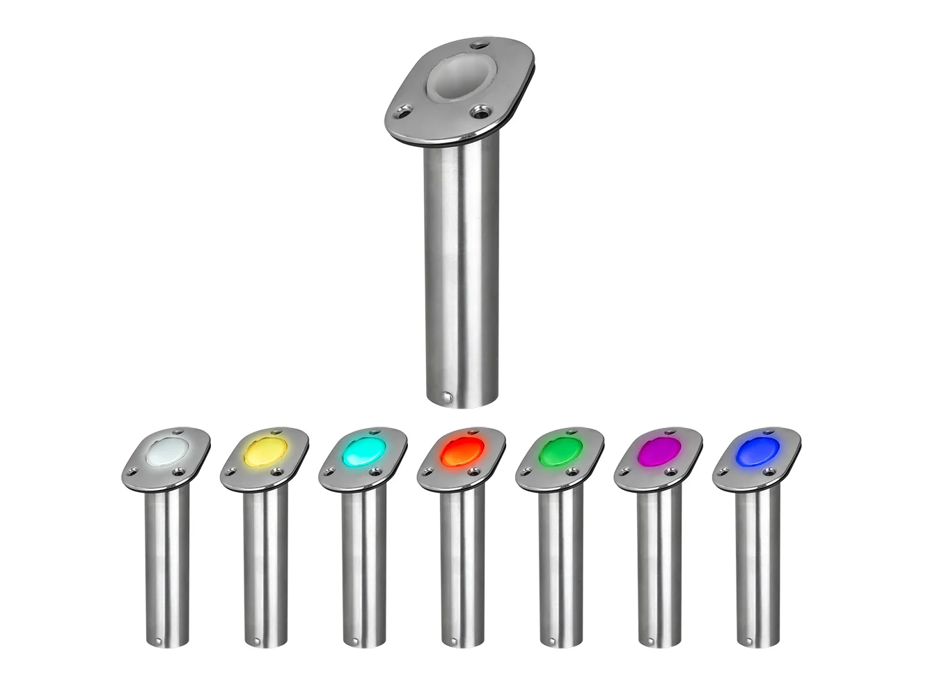 These LED RGB Rod Holders to have translucent tube inserts with bright RGB LEDs and a 30° angle. Or retrofit your existing rod holder with the LED RGB Tube Insert (325189, sold separately). Just remove your existing liner, install the LED RGB Tube Insert, and cut to your mounting face angle. A Bluetooth Smart Phone Controller (403051-1, sold separately) lets you operate this RGB LED Rod Holder from your smartphone (IOS 6 or Android 4.0 and above). Choose from numerous dynamic color-changing modes with adjustable speed and brightness levels or from static color modes. Add multiple LED RGB rod holders with an optional terminal block (426624, sold separately).