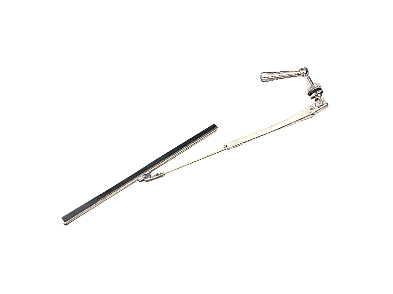 Manual Windshield Wiper includes an 8”-12” adjustable wiper arm (410051) and 11” blade (411151). This hand-operated wiper is an economical alternative to traditional wiper motors. Constructed of chrome plate, machined brass, and stainless steel.