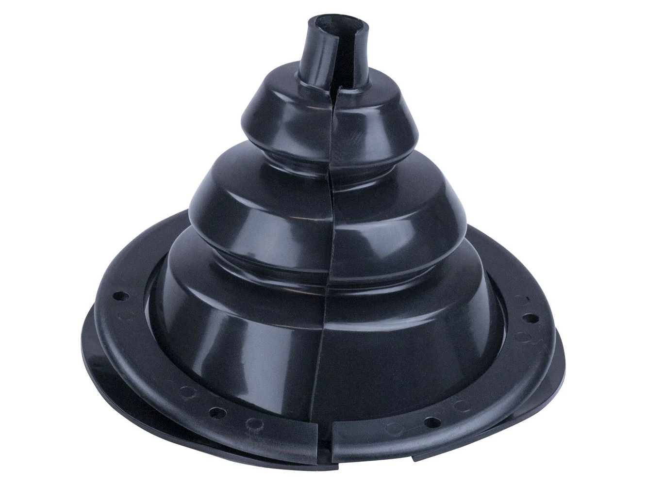 Black accordion style seal organizes and protects engine control cables, wires or fuel lines. UV stabilized molded rubber. Boots and rings are cut for trouble free installation without removal of cables. Includes tie wrap.