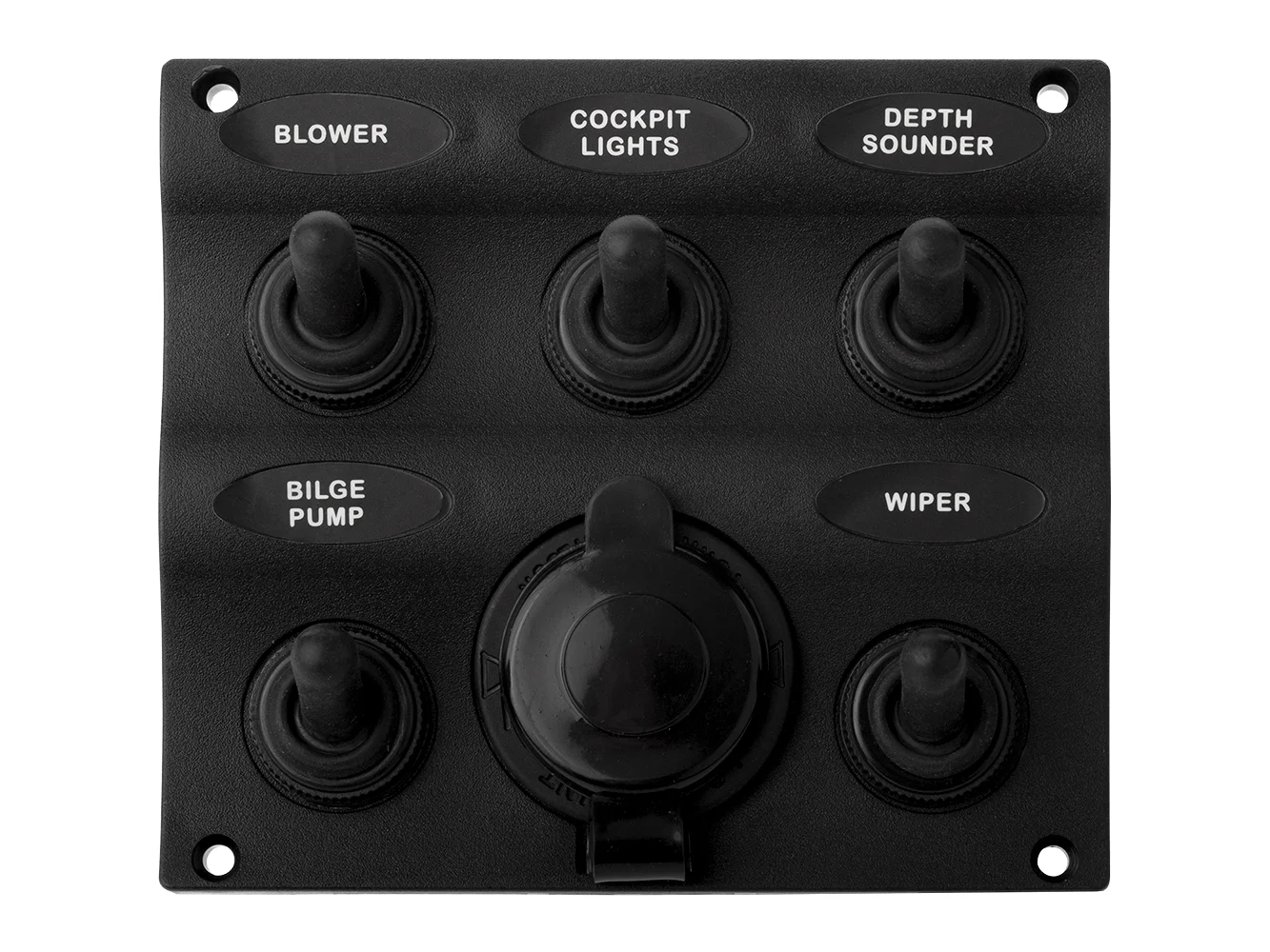Nylon Switch Panel – Water Resistant – 5 Toggles with Power Socket