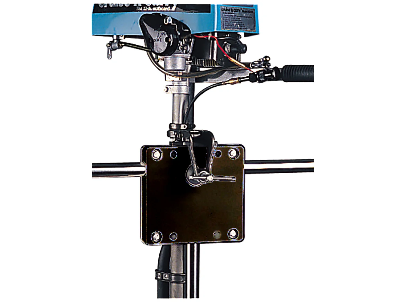 These Rail Mount Motor Brackets are designed to hold small, 2-cycle outboards up to 8 HP upright on the stern rail. Will fit both 7/8″ and 1″ rails, as well as rails using 90° tee fittings. Most other polypropylene and wood motor brackets only fit 1″ welded rails. The two-piece unit features extra holes, enabling the use of a recommended chain to secure the motor. Can also be used as a mounting platform for barbecues, down rigger brackets, fish cleaning tables, etc. Constructed of UV stabilized polypropylene. Includes all necessary fasteners.