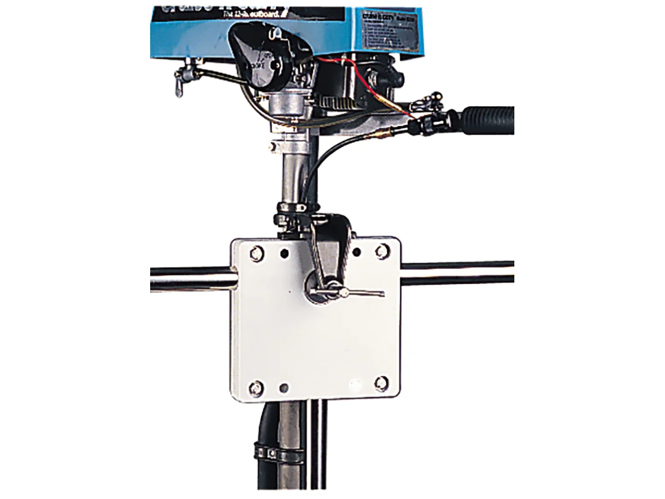 These Rail Mount Motor Brackets are designed to hold small, 2-cycle outboards up to 8 HP upright on the stern rail. Will fit both 7/8″ and 1″ rails, as well as rails using 90° tee fittings. Most other polypropylene and wood motor brackets only fit 1″ welded rails. The two-piece unit features extra holes, enabling the use of a recommended chain to secure the motor. Can also be used as a mounting platform for barbecues, down rigger brackets, fish cleaning tables, etc. Constructed of UV stabilized polypropylene. Includes all necessary fasteners.