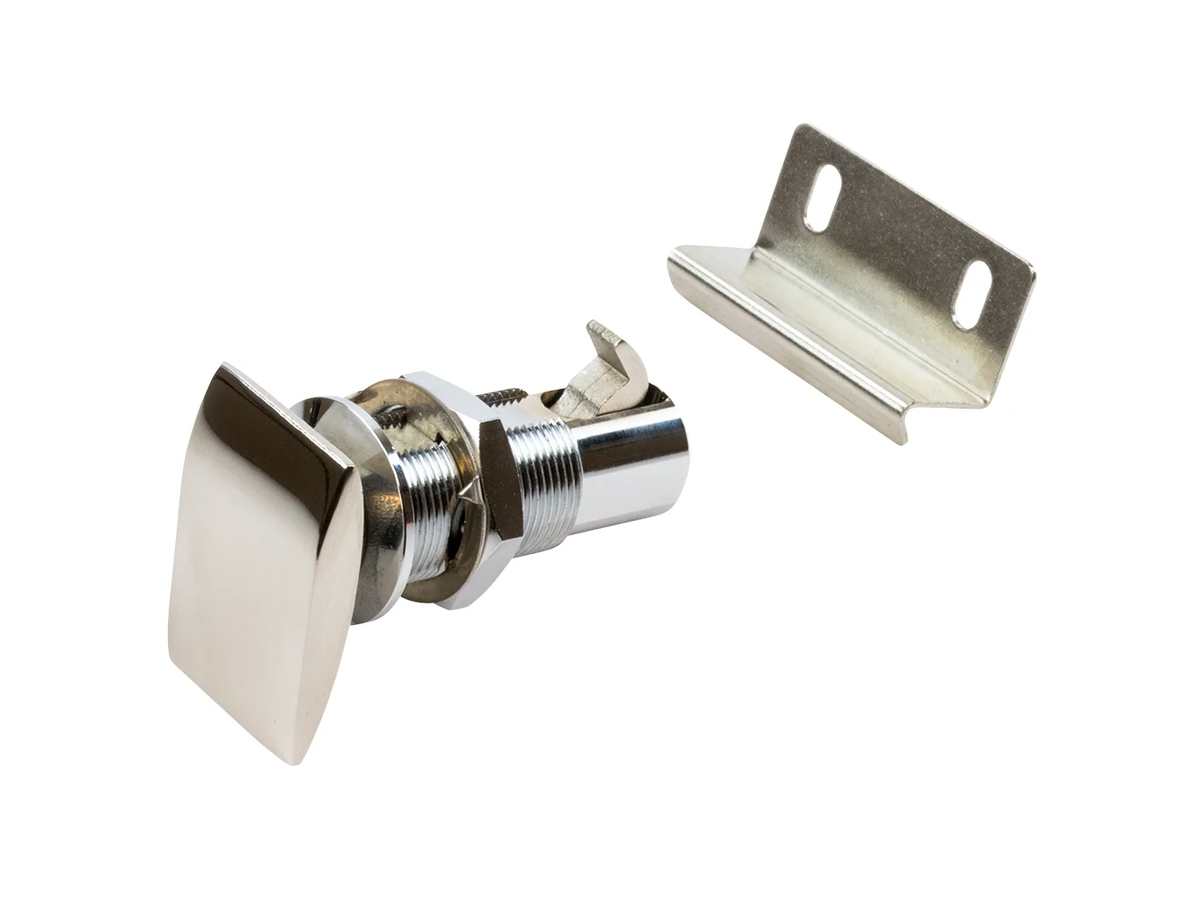 These corrosion resistant 316 stainless steel Cabinet Latches function as both a latch and handle. Push button operation activates and secures the latch with a simple, deliberate motion. Positive action locking function prevents cabinets from opening while in motion. Easy to install by boring a single 3/4” hole. Suitable for left or right-hand side uses. Sleek, low-profile design makes them convenient in tight spaces. Great for glove compartments. Includes catch.