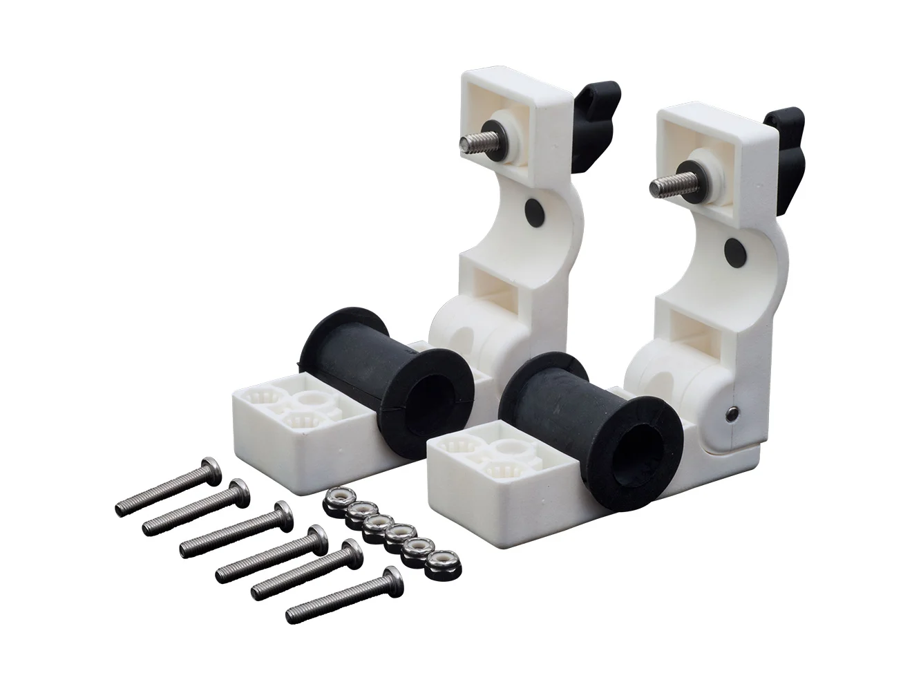 Removable Round Rail Mount Clamps are great for retrofitting your existing rails to mount a wide variety of items, including fillet tables, solar panels, GPS, cell phone holders, cup holders, binocular racks, etc. Clamps fit 3/4", 1", and 1-1/4" tubing. Includes shims, thumb screws, and all mounting hardware. Constructed of UV-stabilized injection-molded nylon with stainless hardware.