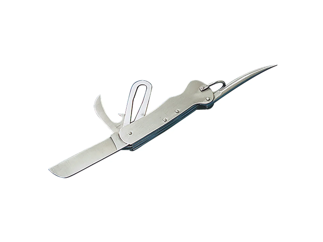 This handy Rigging Knife includes a sharp blade, Marlin spike, shackle key, screw driver, bottle opener, and a loop to attach a lanyard (not included). Constructed of corrosion resistant 304 stainless steel. A great addition to any tool box.