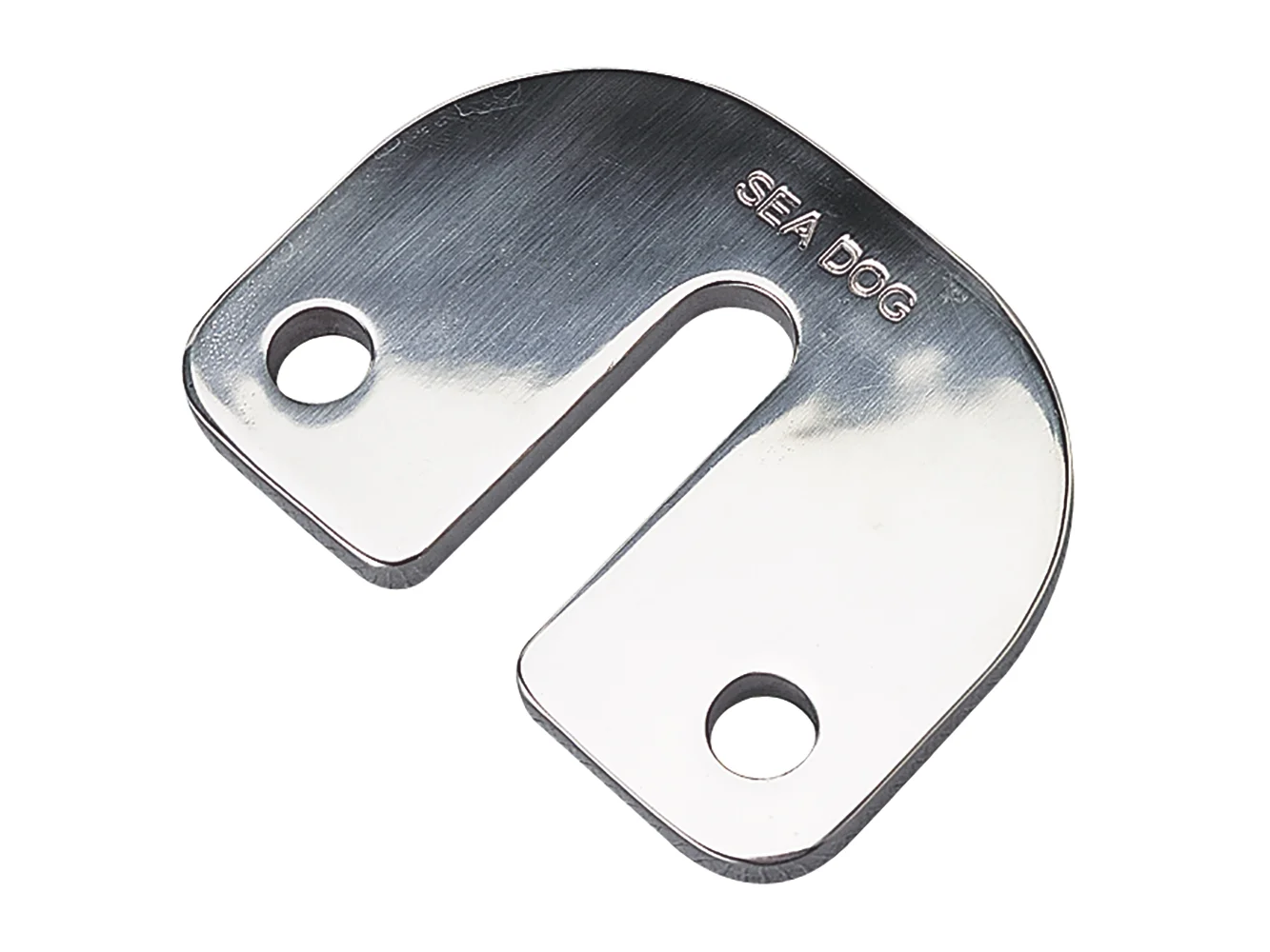 This Chain Gripper Plate stabilizes anchor chains and reduces stress on windlass when anchored in heavy seas. The two holes are used for a bridle application with two Bow Shackles (147212) to connect lines to port and starboard cleats for stabilization. Fits anchor chain sizes: 5/16″, 3/8″, 7/16″, and 1/2″. Constructed of corrosion resistant investment cast 316 stainless steel. Installs with two RH fasteners (not included).