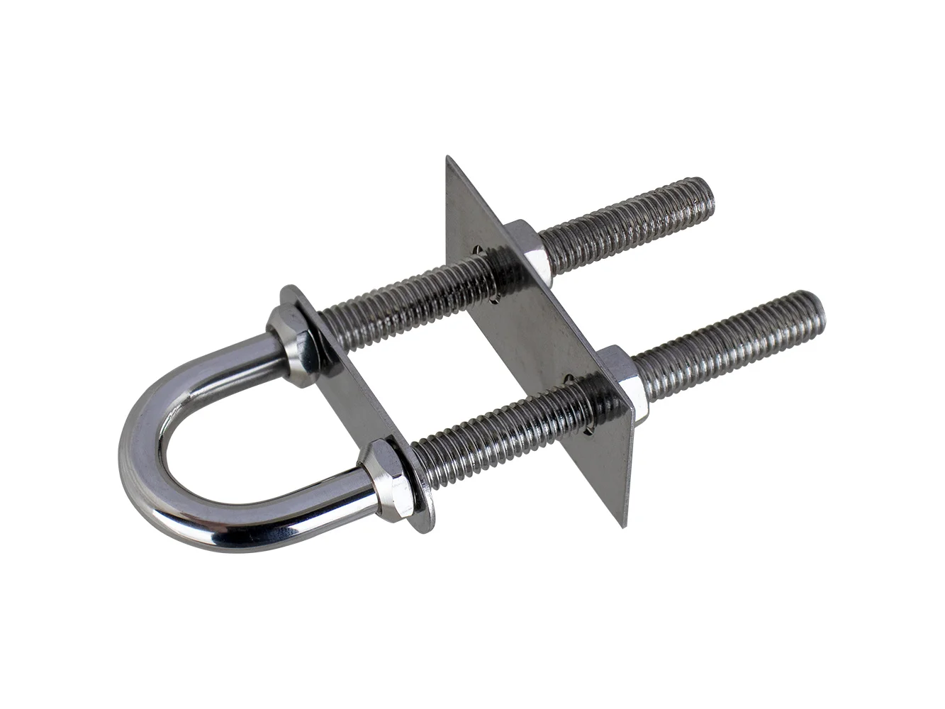 These Stern Eyes are for use as a tie-down point on your boat’s stern. Robust backing plates for added rigidity. 3/8" and 7/16" shafts have rolled threads. 1/2" stock has cut threads. Constructed of corrosion-resistant machined 304 stainless steel. Includes adjustable finish nuts, which provide superior performance over crimp ring-style stern eyes.