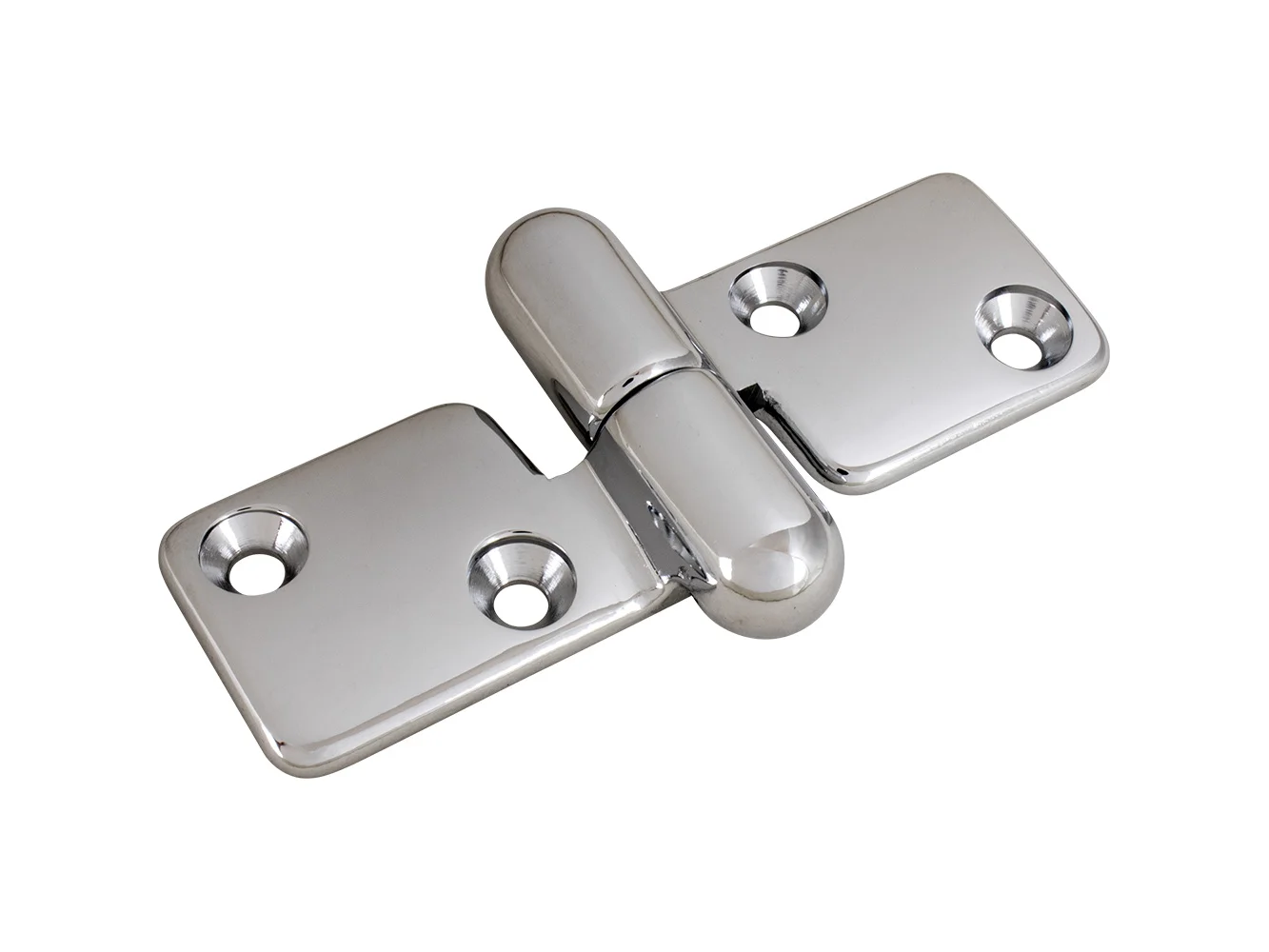 These Take-Apart Hinges allow a door or lid to be removed after installation without having to remove the fasteners. Designed for situations where occasional removal may be required for easy stowing or cleaning. These chrome-plated forged brass hinges can be used horizontally or vertically. Surface mounts with four #10 FH fasteners (not included).