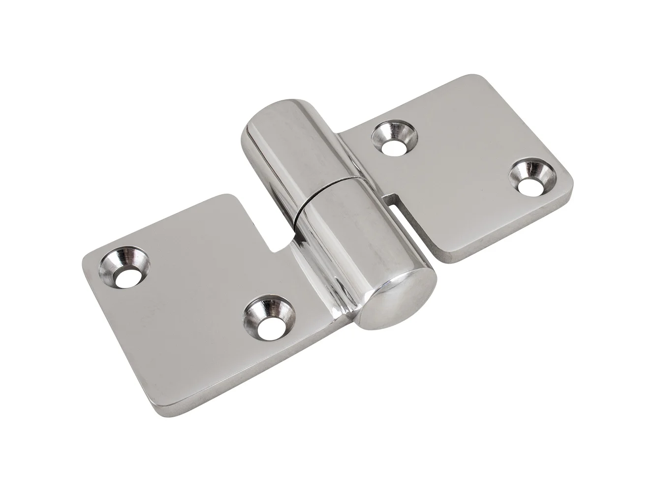 Take-Apart Hinges allow a door or lid to be removed after installation without having to remove the fasteners. Designed for applications where occasional removal may be required for easy stowing or cleaning. It can be used horizontally or vertically. Constructed of corrosion-resistant investment-cast 316 stainless steel. Surface mounts with four #10 FH fasteners (not included).