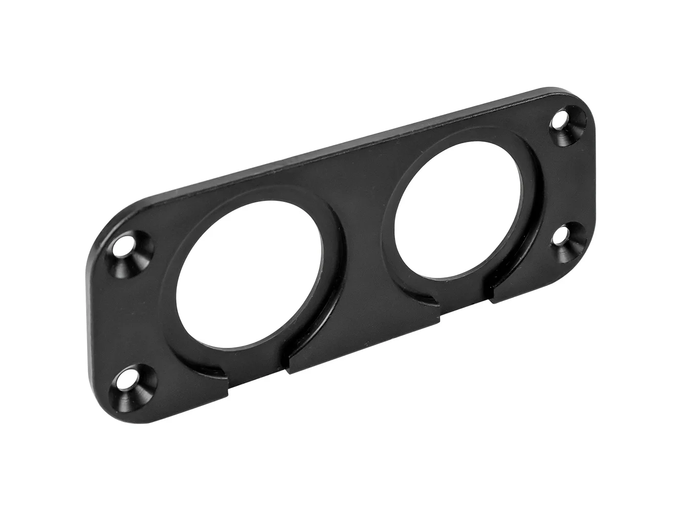 This dual power socket/meter panel accommodates USB and standard power sockets and meters that are 1-1/8 inches in diameter. Constructed of injection-molded nylon.