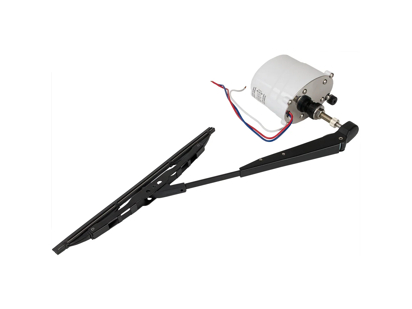 Waterproof Standard Wiper Motor Kit includes a waterproof frame mount, wiper motor, an adjustable wiper arm (9-1/2″-12-1/2″), and an 11” curved blade. Constructed of corrosion resistant powder coated aluminum housing with stainless steel base plate, shaft, and knurled drive nut. IP66 rating. CE compliant. 3-year warranty.
