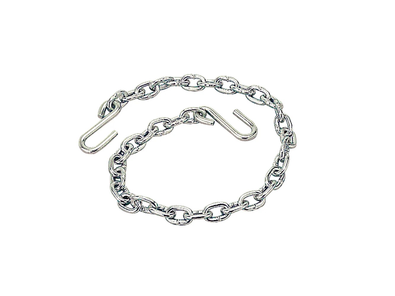 Use this chain between your trailer and vehicle as an added layer of security to prevent separation if trailer inadvertently comes off trailer ball. Secures with S-hooks on both ends. Zinc plated steel construction.