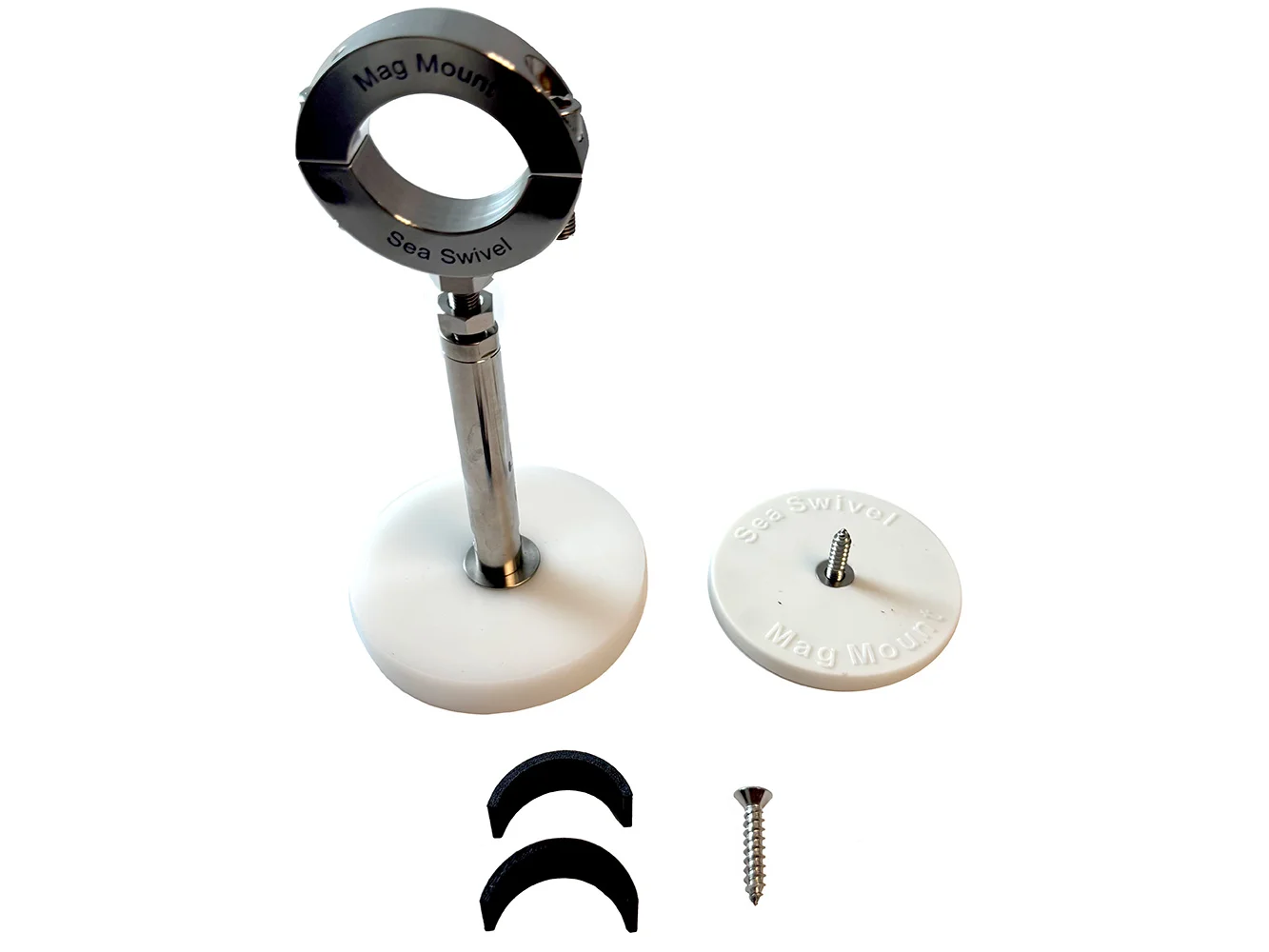 The Mag Mount is the first of its kind, neodymium magnetic trolling motor support arm, crafted from high-quality Grade 5 titanium and double-coated UV-resistant rubber magnets. Designed to keep your trolling motor head stable while underway, the Mag Mount deploys with your motor head, keeping your deck clear of trip hazards and line catchers thanks to our flush-mounted magnet system. Installation has never been easier with a single screw mounting system; it can be installed virtually on any flat surface.