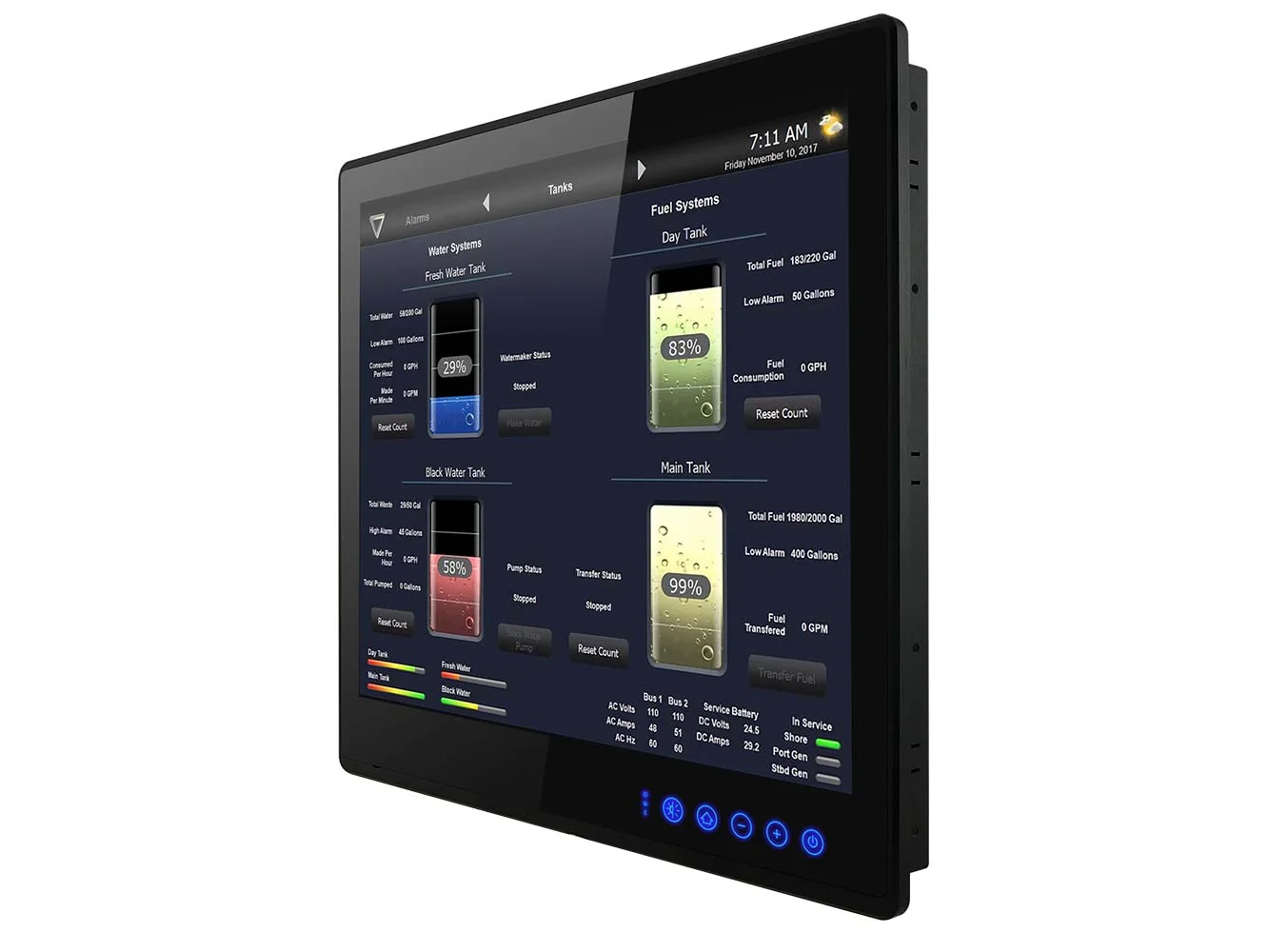 Electronic Chart Display and Information Systems (ECDIS) are designed to meet International Maritime Organization (IMO) compliance regulations. These displays are color calibrated for optimal electronic chart viewing and feature capacitive touch keys for quick function access and display control (support ECDIS day, dusk, and night mode switching).