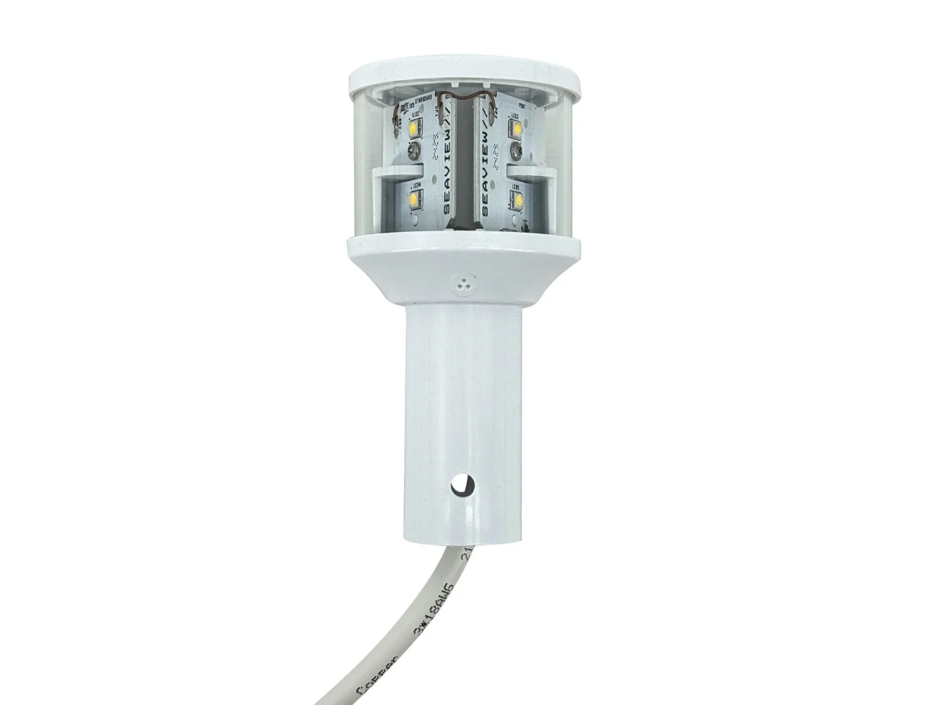 C5 certified, white, round Seaview 3NM LED combination masthead all-round light / IP67 watertight with 7' of wire (12V). USCG-approved for boats up to 20 meters (65.6') in length.