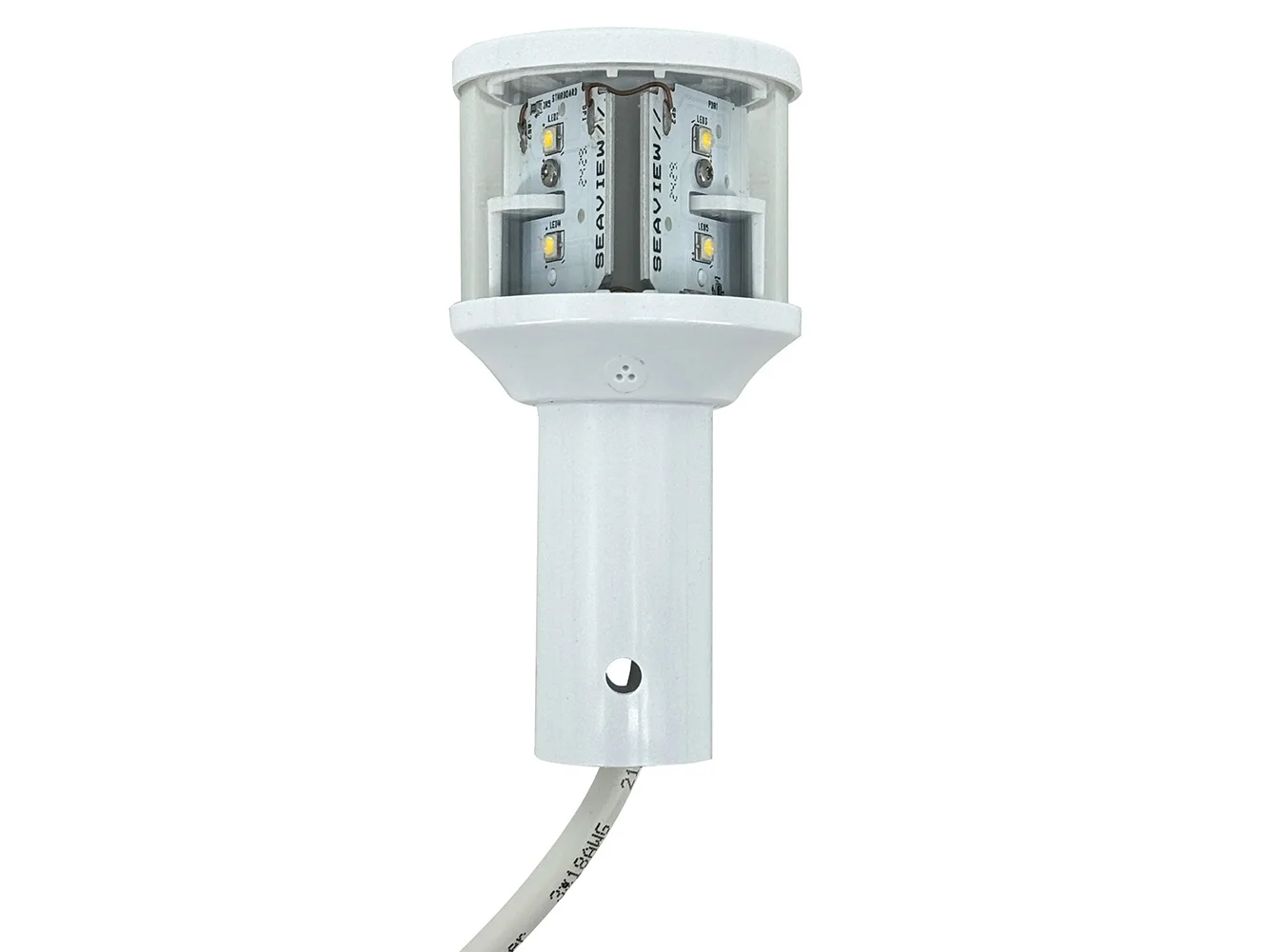 C5 certified, white, round Seaview 3NM LED combination masthead all-round light / IP67 watertight with 7' of wire (24V). USCG-approved for boats up to 20 meters (65.6') in length.