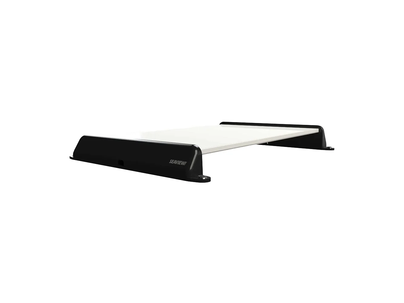 The two end caps are crafted from machined marine-grade high-density polyethylene, offering an exceptional finish and corrosion resistance. These end caps are secured to black hard-anodized aluminum strips, providing superior strength to firmly hold the Gen 3 antenna on any flat surface.
