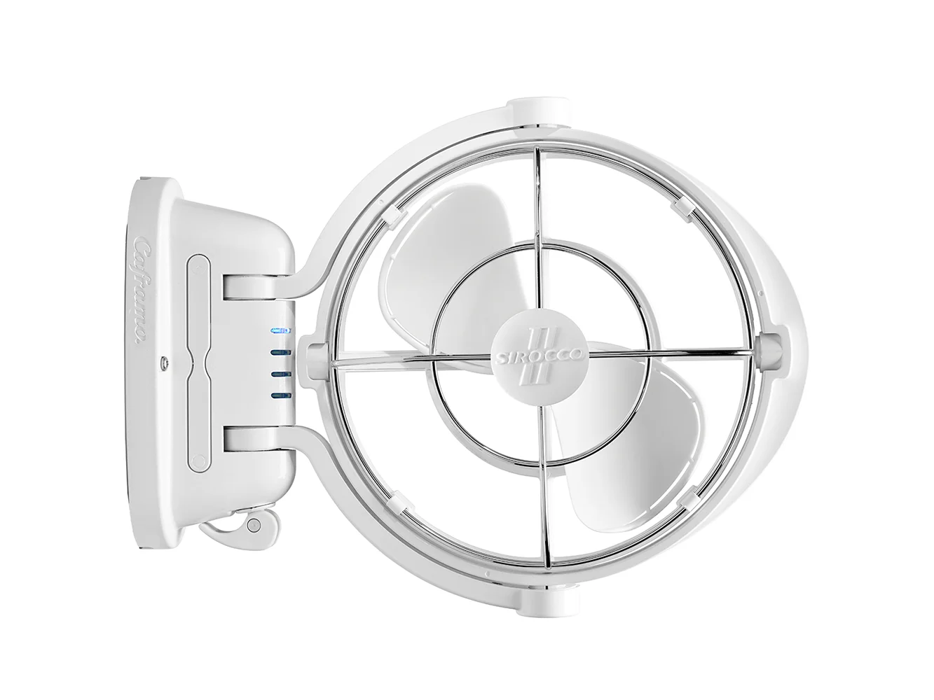 The best cabin fan available in the marine market! The model 7010 Sirocco II 12-24 Volt fan features a unique gimbaled design that allows airflow to be directed in any direction of the cabin – 360°. The Sirocco II can also be folded flat and out of the way against the bulkhead when not in use. With its multiple speeds, timer settings, and quiet operation there is no other marine fan that can match the Sirocco II’s performance. It truly is the premium choice for comfortable cabins and salons.