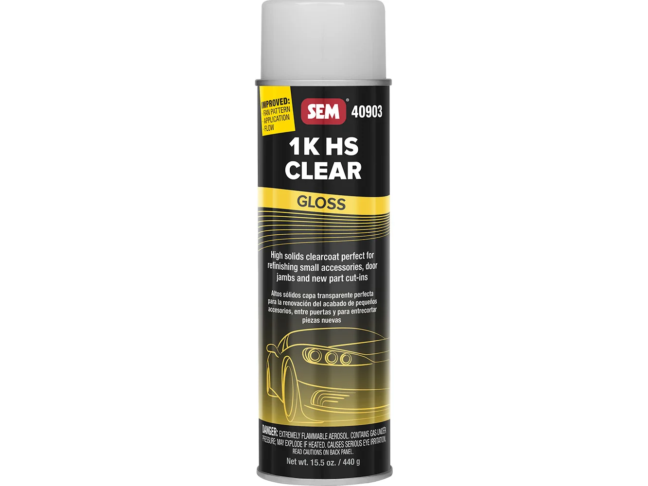 1K HS Clear is a high solids clearcoat, perfect for refinishing small accessories, door jambs, underhoods, inner panels, and new part cut-ins.