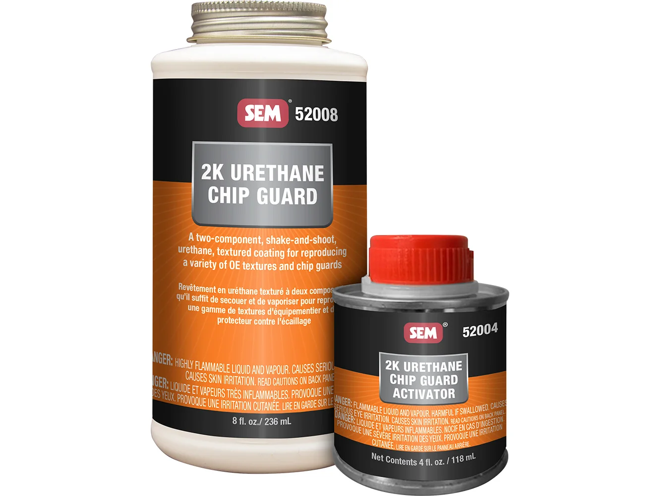 2K Urethane Chip Guard is a job-sized, two-component, shake-and-shoot, textured coating for reproducing a variety of OE textures and chip guards. Two-component system helps eliminate common problems seen with one-component products, such as long flash times, pinholes, solvent trap, delamination, and solubility.