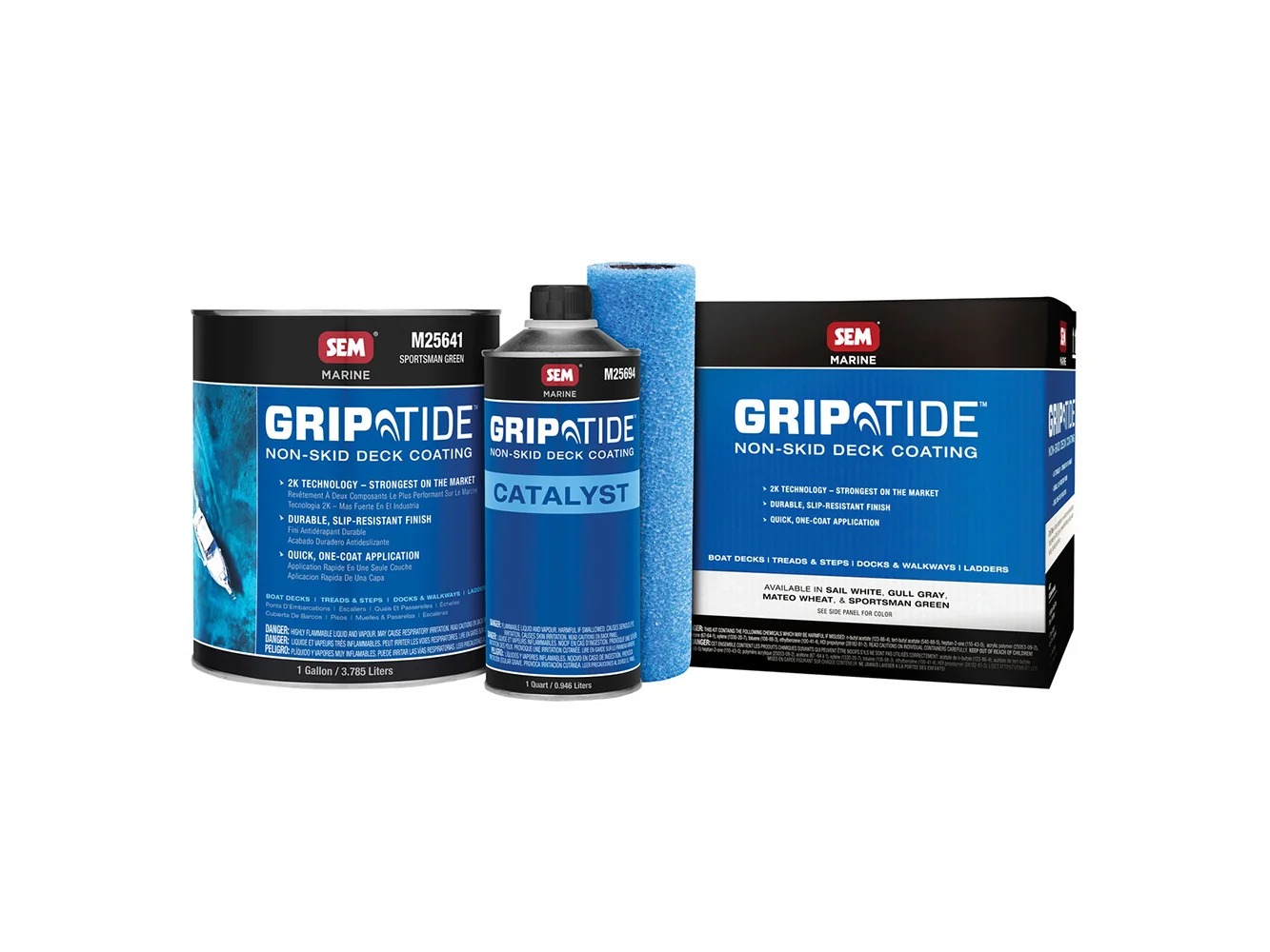 - Kit contains 1 Gallon GripTide Non-Skid Deck Coating, 1 Cone Quart GripTide Catalyst, and 1 (9″) GripTide Deck Coating Roller