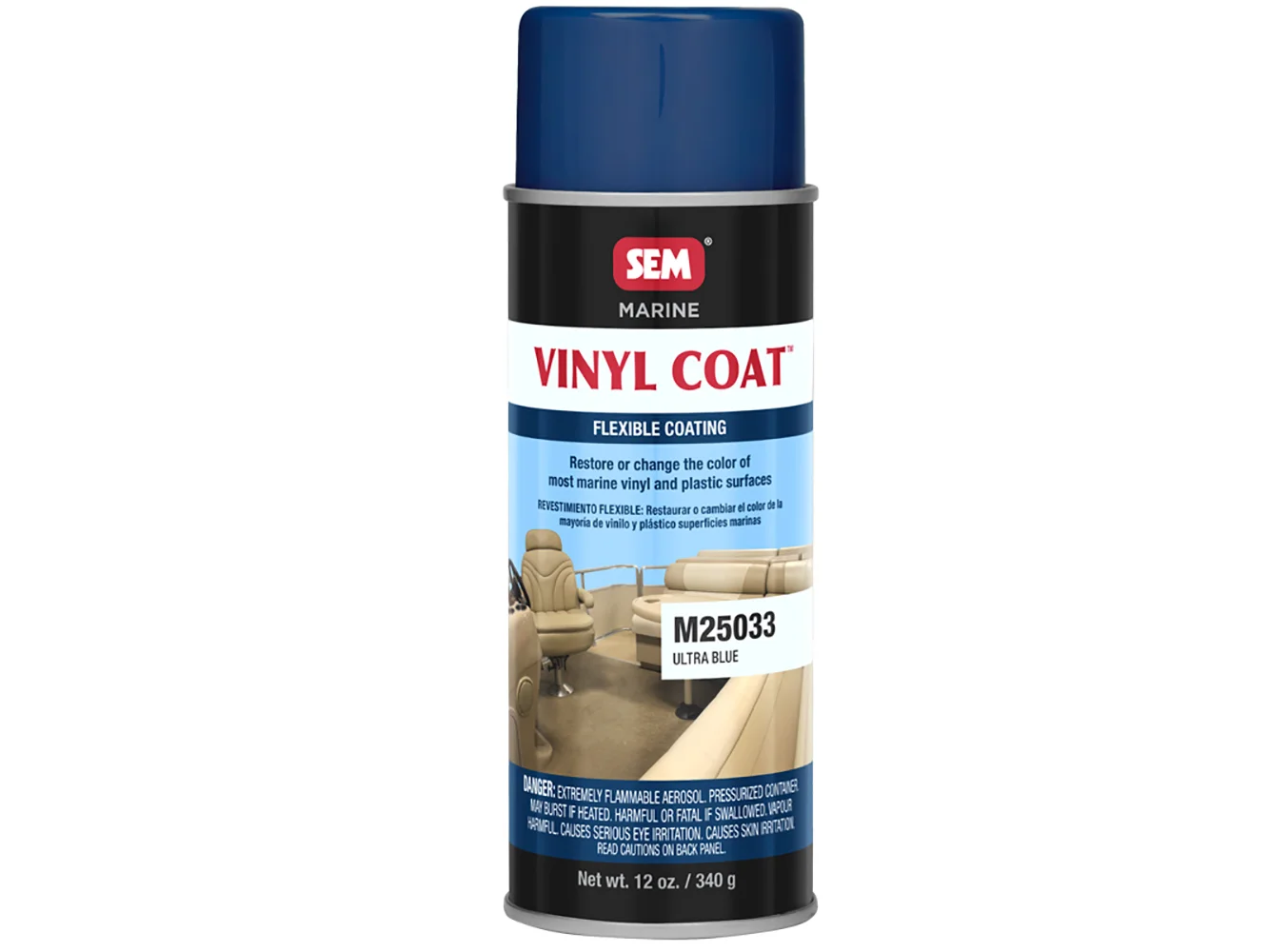 Marine Vinyl Coat is a line of flexible aerosol coatings to match, restore or change the color of most marine vinyl and plastic surfaces.