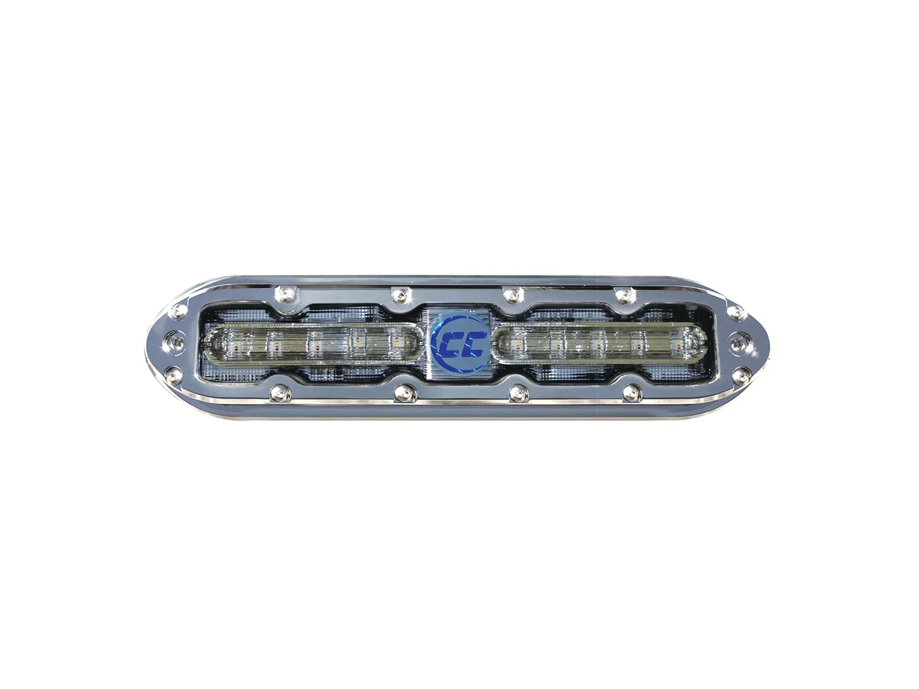 The SCM-10-EXT-CC extended color underwater light provides your vessel with 42 watts of intense LED lighting. Easily switch between 12 standard colors or use an or use a Shadow-NET® enabled product to enjoy unlimited colors. The SCM-10-EXT-CC’s low profi le design allows for many mounting locations. The unique stainless steel housing compliments the look of any trailer or lift kept boat.