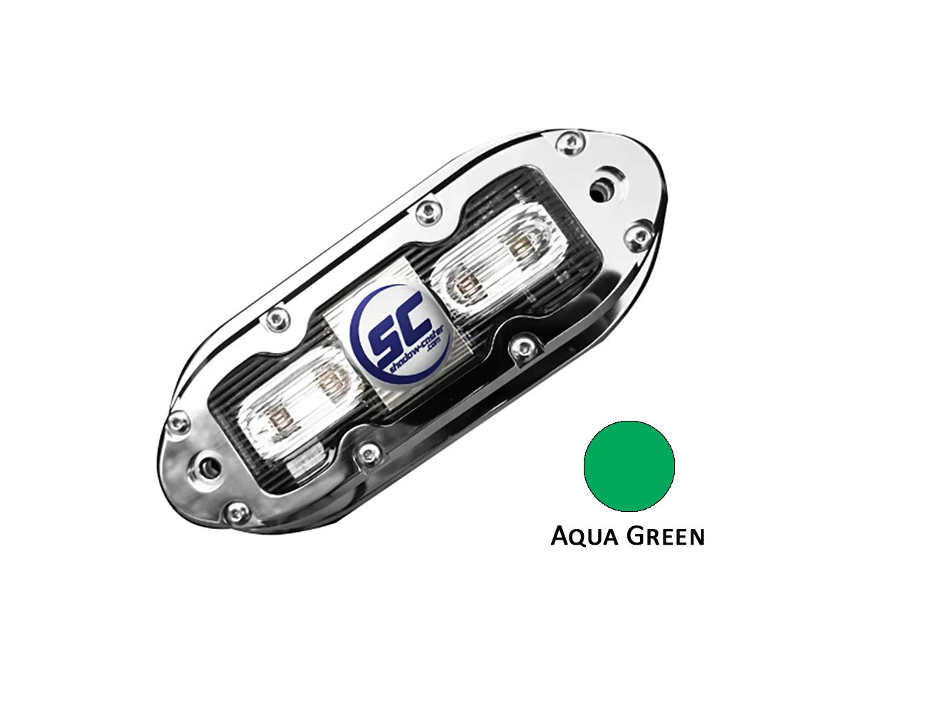 SCM-4 LED Underwater Light w/20′ Cable – 316 SS Housing – Aqua Green