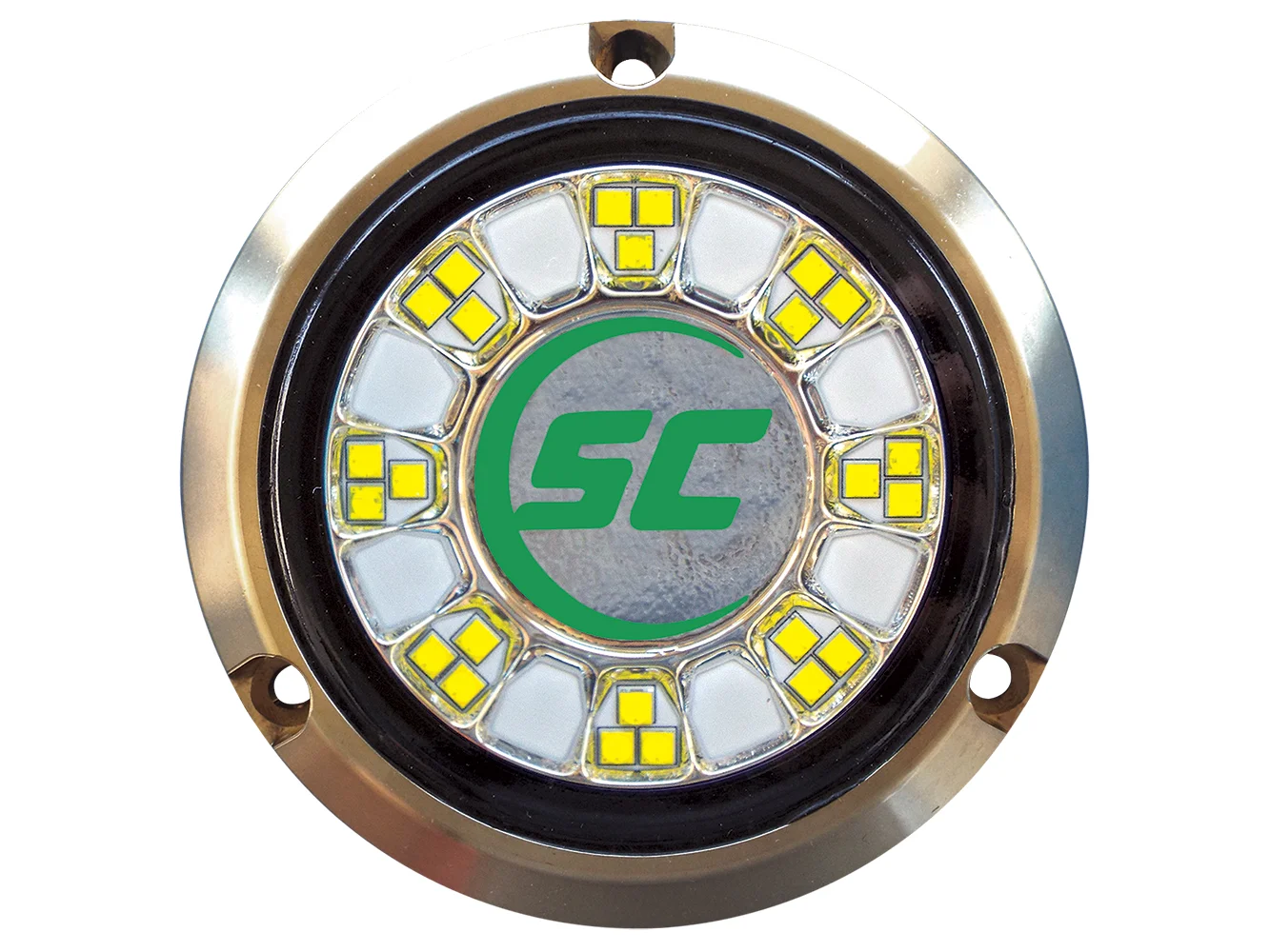 The SCR series underwater LED lights are designed to be marine vessel hull mounted for continuous submersion in sea water. These models off a great value and small 4″ diameter to fit many locations. Multiple brightness options are available as well as single or multi-color.