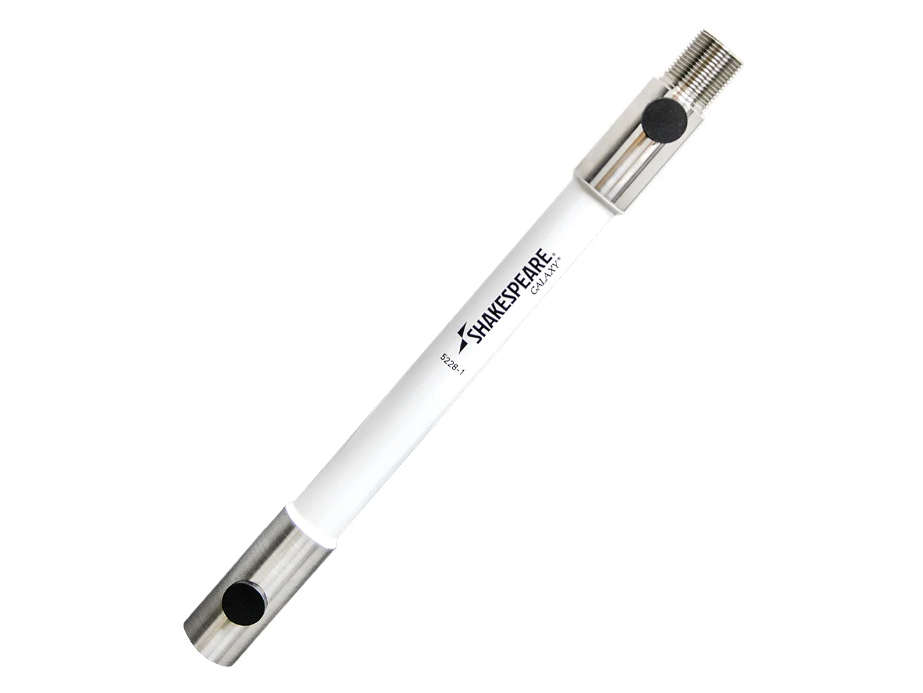 One foot length. Constructed of high-quality Shakespeare white fiberglass, and finished to match Galaxy antennas. This 1 ” diameter extension mast can be used to increase height of an antenna and thus improve effective range, or to boost placement of an antenna above on-board obstructions. For light to moderate applications. Excellent for use with GPS or TV antennas to clear on-board obstructions.