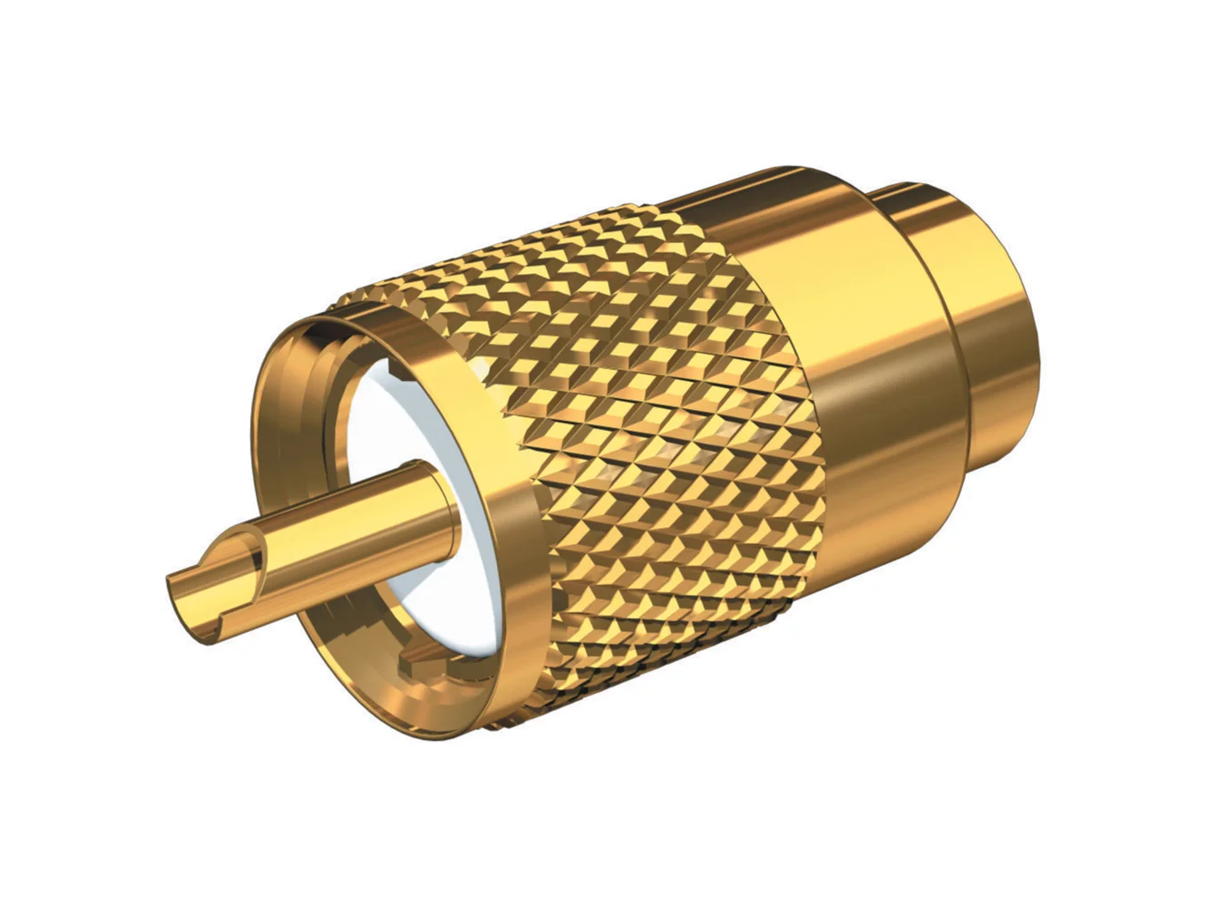 PL-259-G is a gold-plated, solder-type PL-259 connector for RG-8/AU and RG-213 coax.