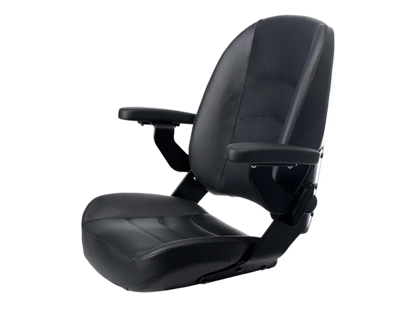 Designed to pair perfectly with the Shockwave S5 suspension bases, the Shockwave S5 Corbin Mid-Back seat is a robust boat seat that comes equipped with folding armrests, a storage pocket, machined aluminum seat frames, fiberglass seat backs, and closed-cell foam Corbin cushions made with marine-grade vinyl. Designed for a marine environment, the Shockwave S5 Corbin Seat features lumbar support, race car styling, and high-density foam designed to activate the suspension base.