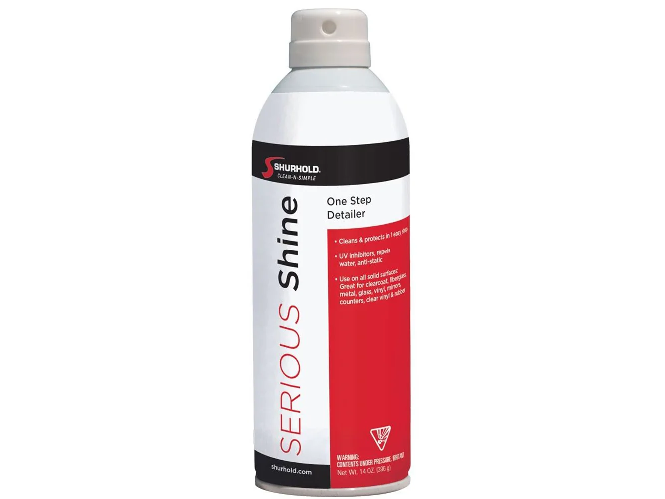 The perfect one step detailer! Serious Shine cleans, polishes, and protects virtually any solid surface in one easy step, leaving no greasy, artificial residue. Also, contains UV inhibitors and anti-static properties, further protecting all types of surfaces. Serious Shine is the perfect quick detailer.