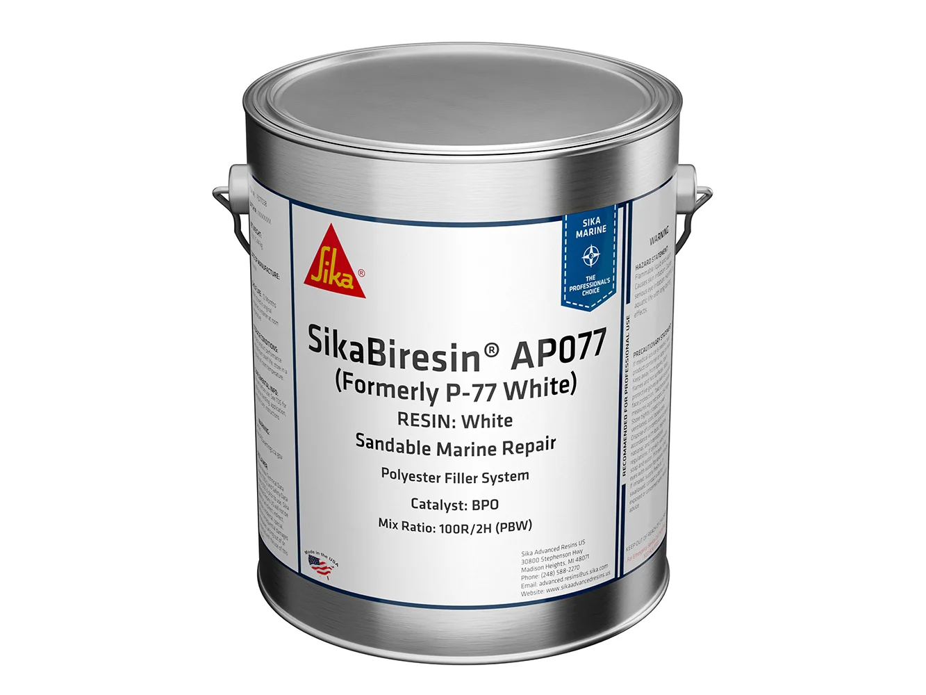 SikaBiresin® AP077 is a polyester filler and fairing compound that offers the user a smooth workable paste with a set fast cure to expedite those applications for repair or finish. It is easier to sand than conventional fillers and can be finished to a feather edge. This material can be easily applied with a squeegee, spatula, or flat tool, and once cured will accept virtually all types of coatings and decorative films.