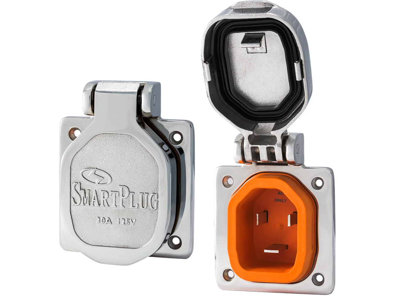 SmartPlug’s 30 AMP 125 V inlets provide 20X’s more electrical contact area eliminating the overheating conditions seen with twist-type connectors. The solid sleeve connection and weatherproof seal makes it a preferred option. The mounting flange holes match existing inlets so it can be easily installed to replace the old twist-type inlet products in minutes.