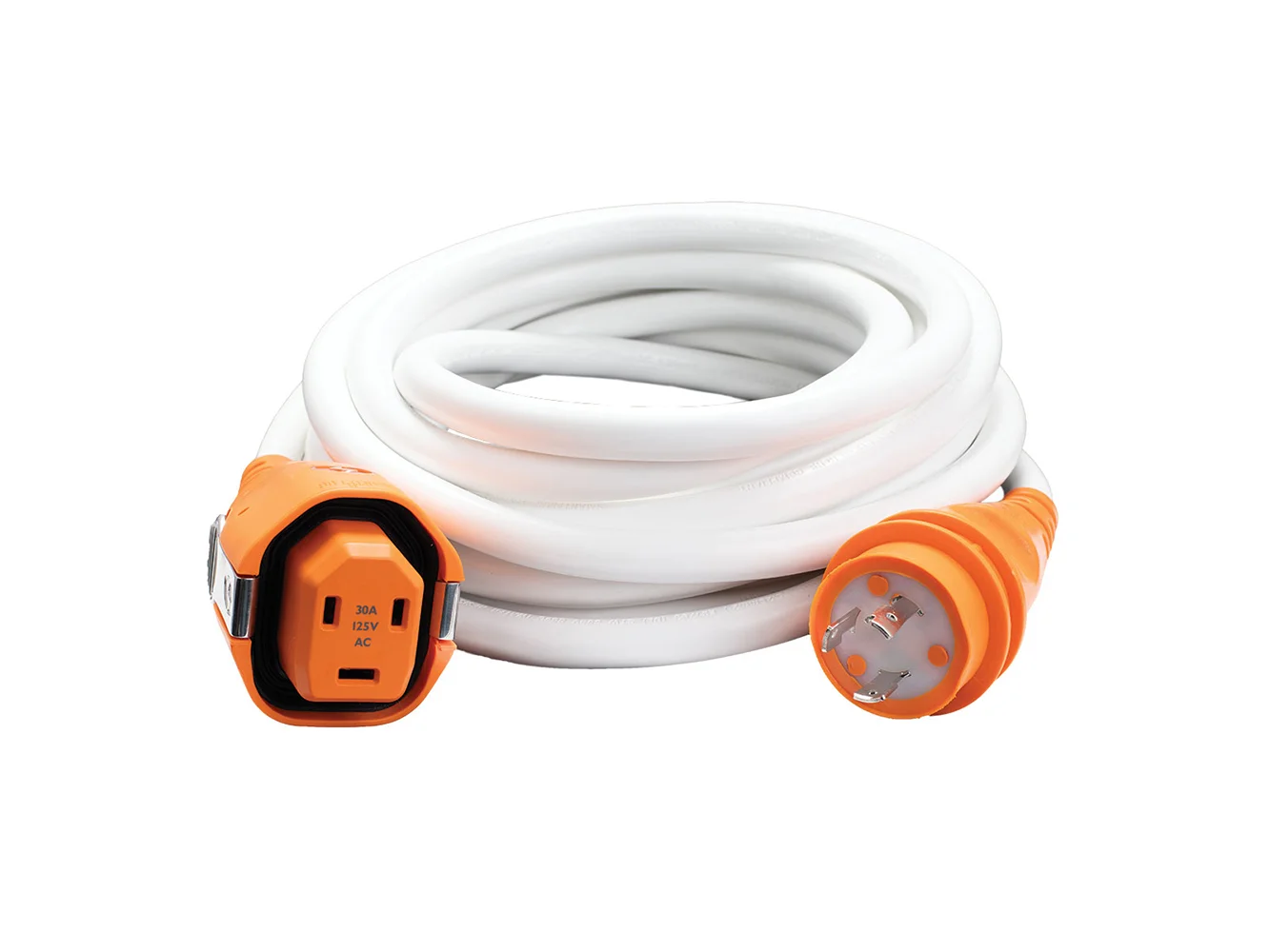 The 30 AMP 125 V cordset provides a complete weatherproof power solution. The cordset includes the SmartPlug connector for the Boatside and a Twist Type Plug connector for the Dockside.