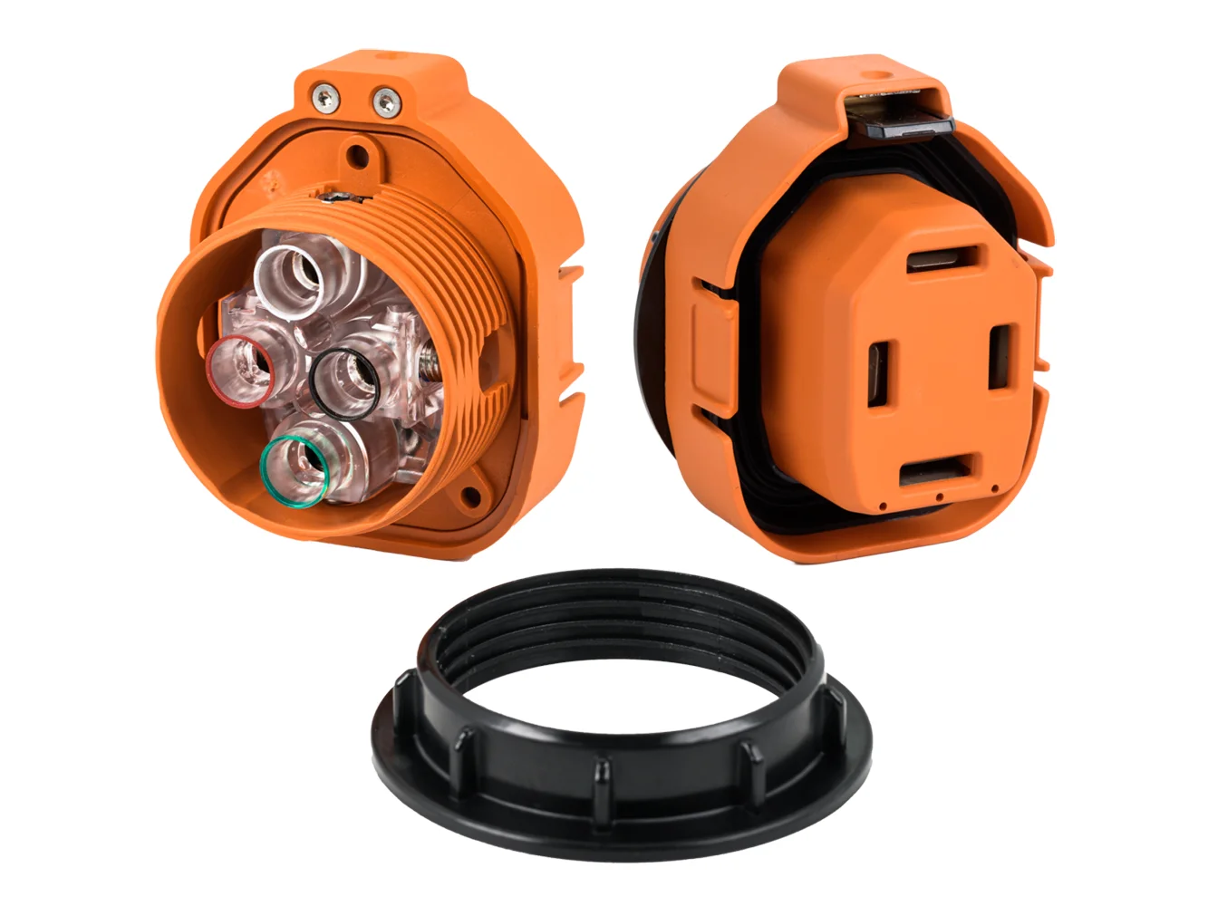 - Mechanical Locking System – Each receptacle incorporates a spring-loaded lock for a secure connection.