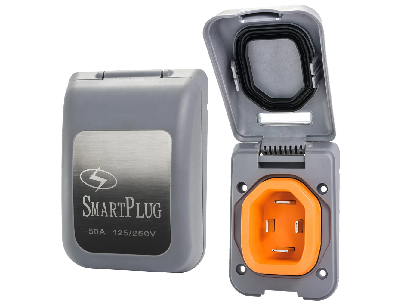 SmartPlug’s 50 AMP 125/250 V inlets provide 20X’s more electrical contact area eliminating the overheating conditions seen with twist-type connectors. The solid sleeve connection and weatherproof seal makes it a preferred option. The mounting flange holes match existing inlets so it can be easily installed to replace the old twist-type inlet products in minutes.