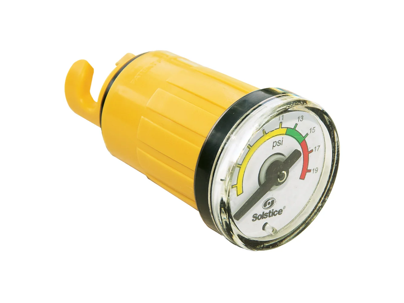 Easily and accurately read the exact pressure of your SUP, boat, or other inflatable. Connects to standard high-pressure HR valves. For high pressure up to 20 PSI.