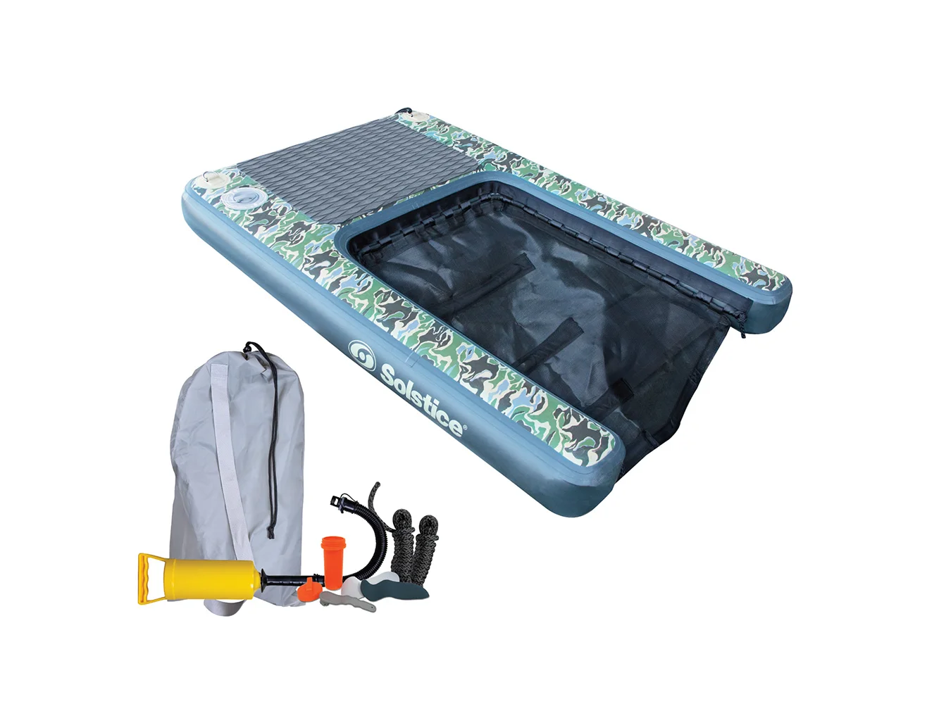 The inflatable Pup Plank dog ramps are perfect for any dog. These can be used on boats, docks, pools & more. Great for the pool to help animals or critters exit the water safely. Deep weighted mesh with integrated steps creates an easy entrance for your dog. Equipped with multiple D-ring tie-downs, claw-resistant traction pad & (2) 8ft lines for tying.