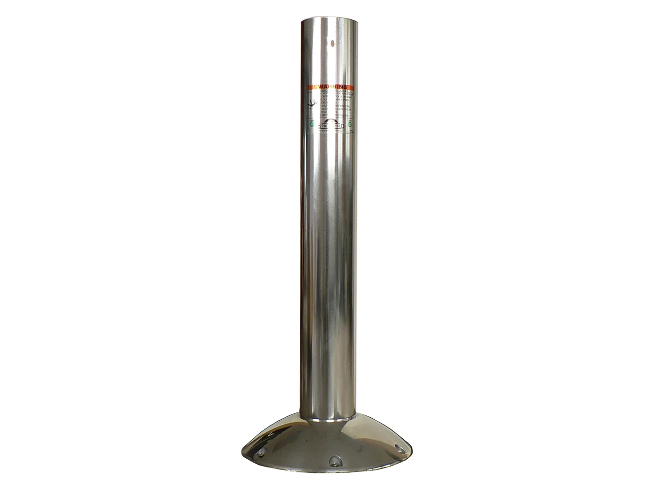 4″ Pedestal of .213″ thick aluminum with 12″ round base, polished finish. The pedestal is sized and pressed into base then rim welded for stability. Use with any 4″ Mariner II or Workhorse slide or swivel (sold separately).