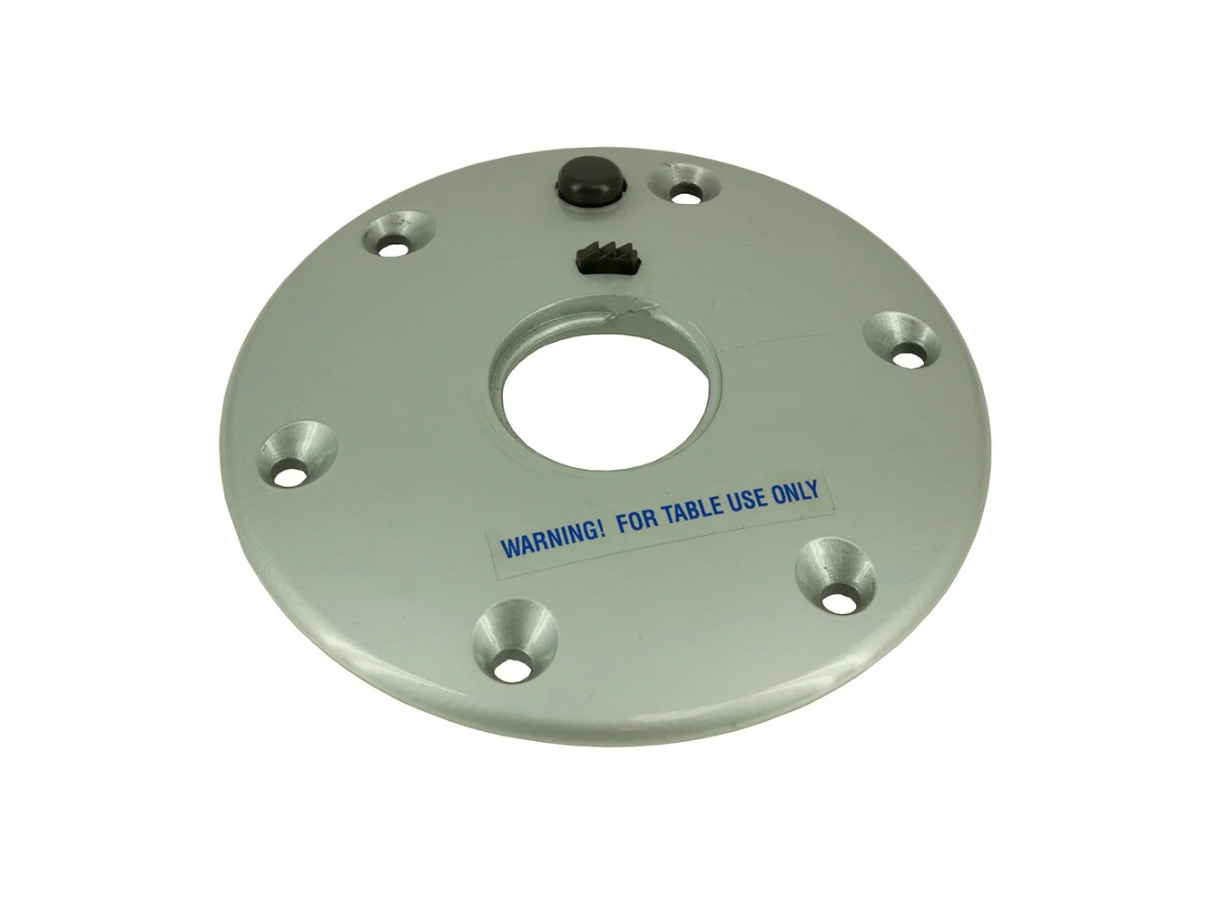 High-strength 2-3/8″ threaded aluminum table base with satin finish. 7″ diameter with 5-3/4″ hole pattern. Total height: .625″. Use with any 2-3/8″ Thread-Lock™ table post (sold separately).