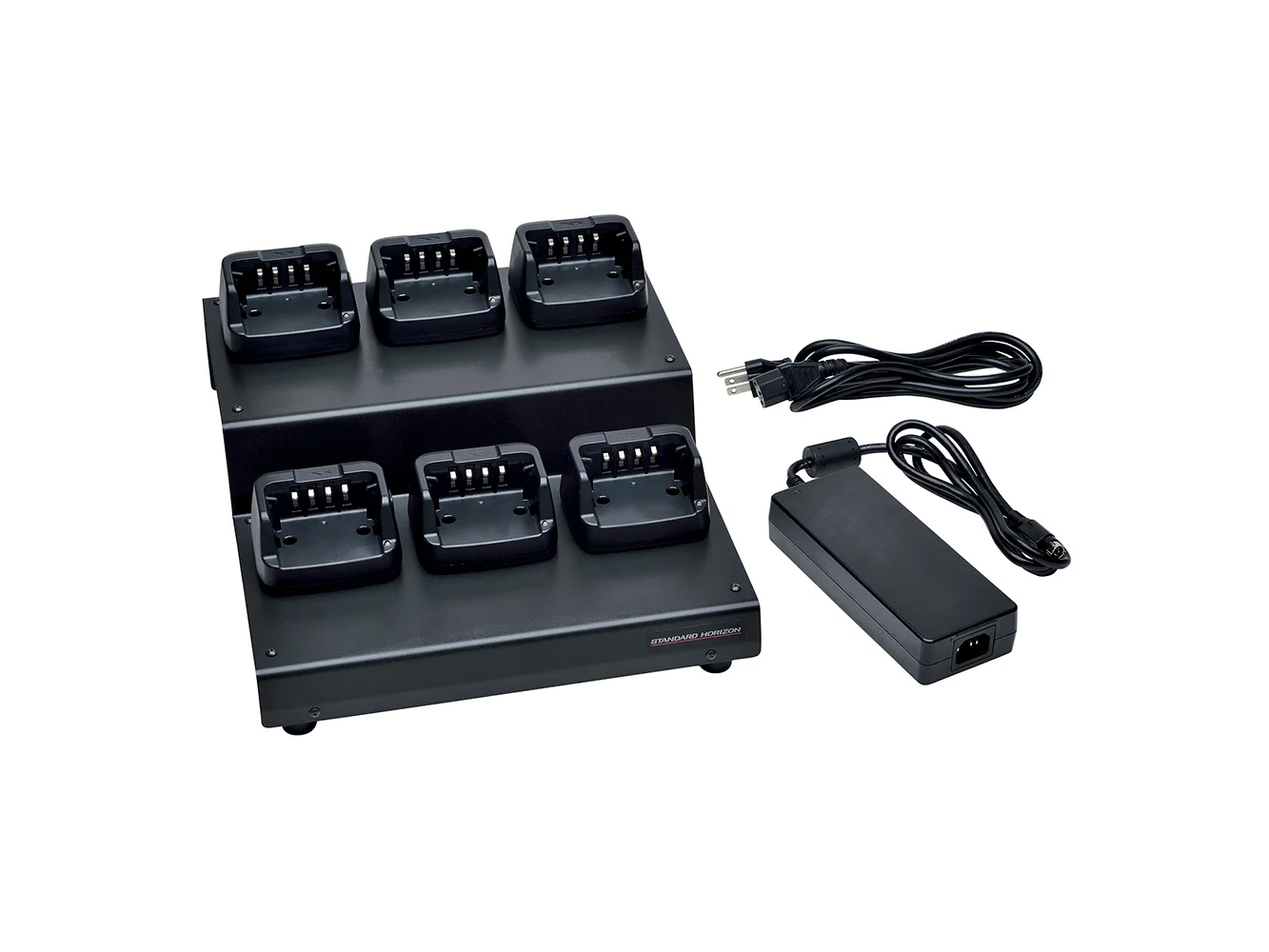 The SAD-1460 is a rugged 6-Unit Multi Charger that enables recharging of Lithium-Ion battery pack for Yaesu transceivers.