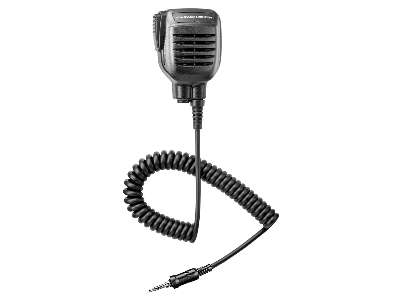 Standard Horizon SSM-21A submersible speaker microphone with heavy-duty belt clip. Compatible with Standard Horizon HX890, HX400, HX400IS, HX380, HX40, and HX210.