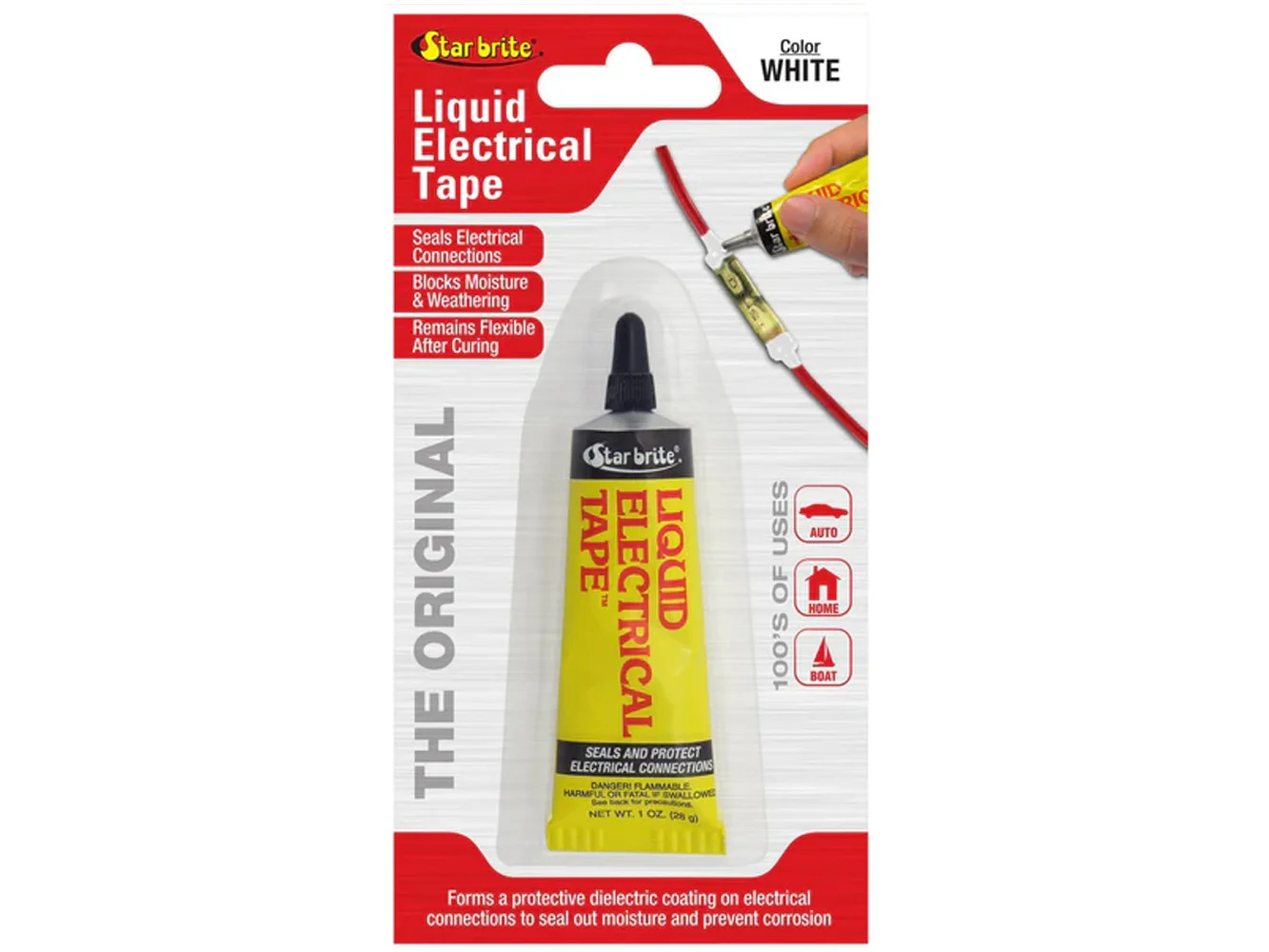 Wires or terminals to be sealed must be clean and dry. Squeeze Star brite® Liquid Electrical Tape onto the electrical connection area. Allow to dry for 5 minutes and apply a second coat if a greater thickness of seal is needed. Additional coats may be applied at 5-minute intervals to build up extremely thick protection. The product fully cures in 24 hours.