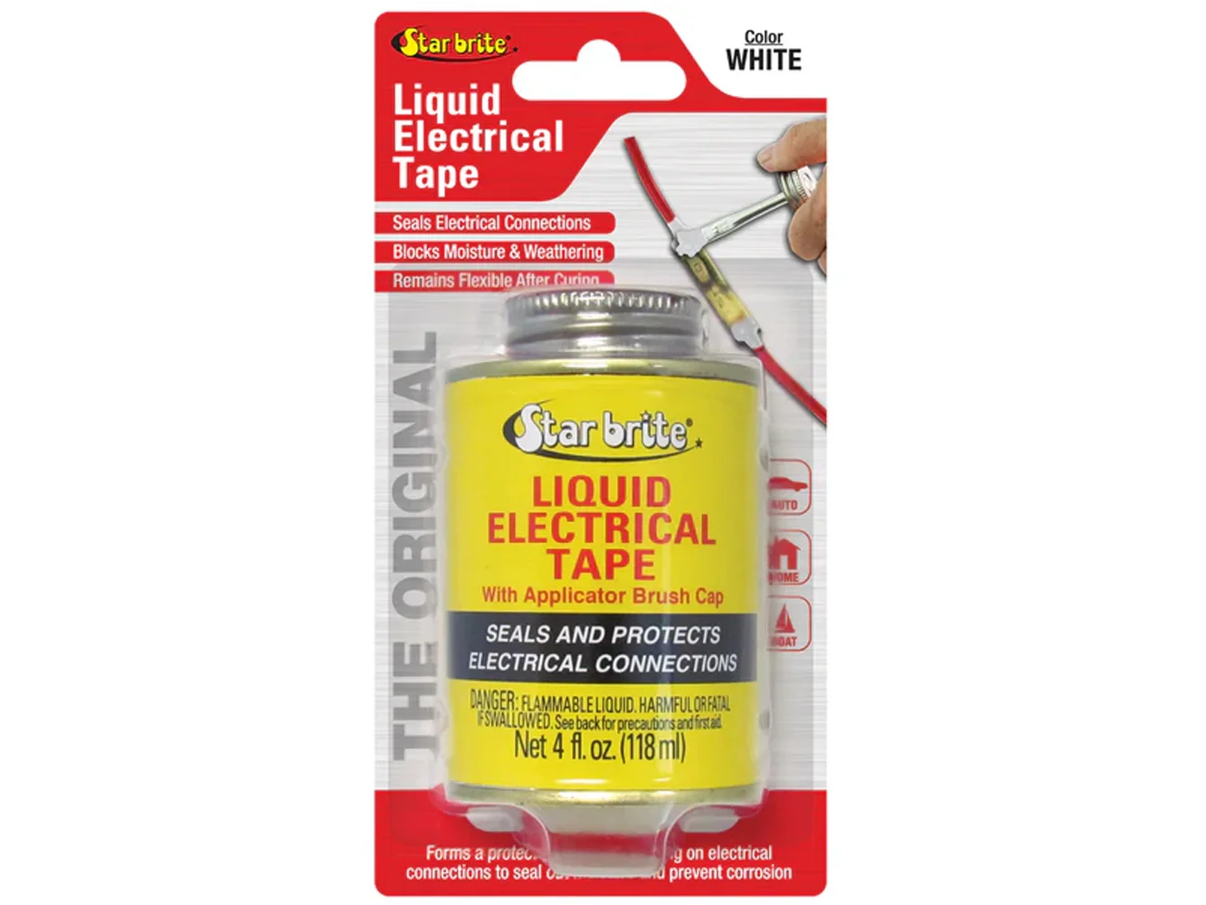 Wires or terminals to be sealed must be clean and dry. Squeeze Star brite® Liquid Electrical Tape onto the electrical connection area. Allow to dry for 5 minutes and apply a second coat if a greater thickness of seal is needed. Additional coats may be applied at 5-minute intervals to build up extremely thick protection. The product fully cures in 24 hours.